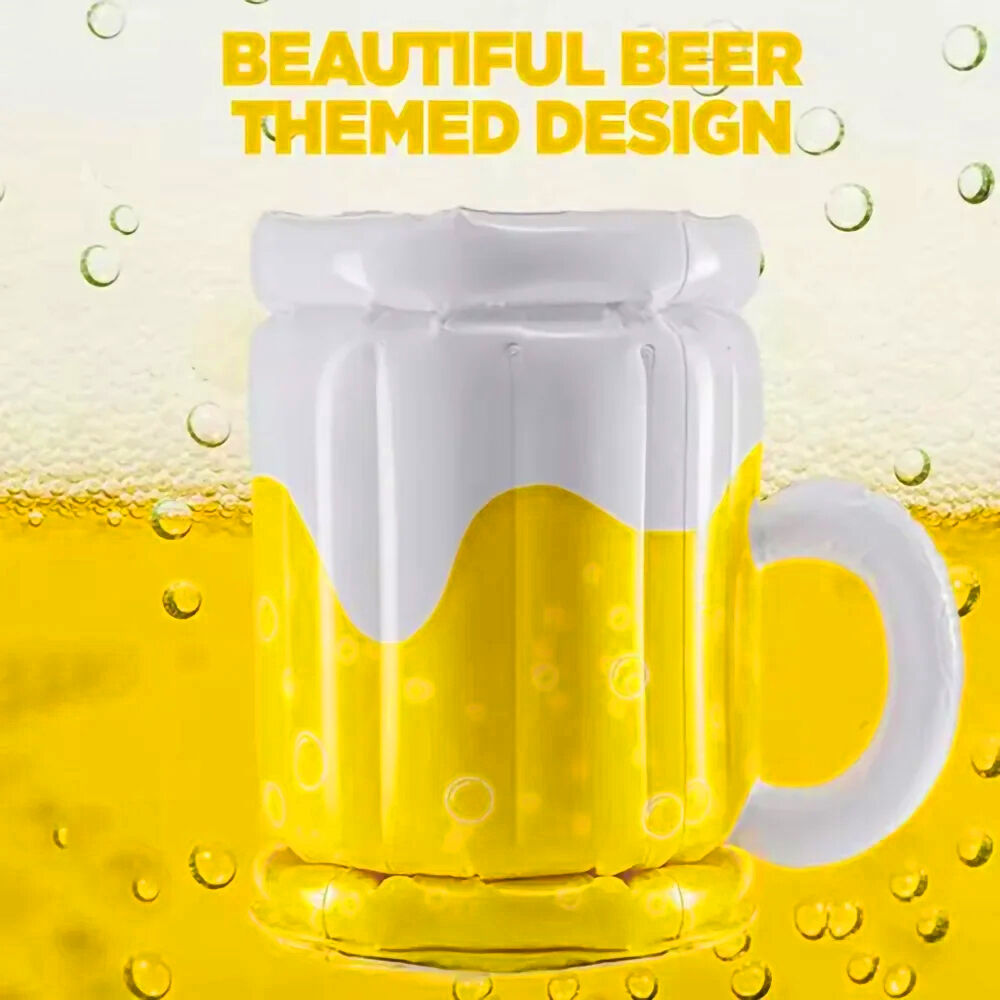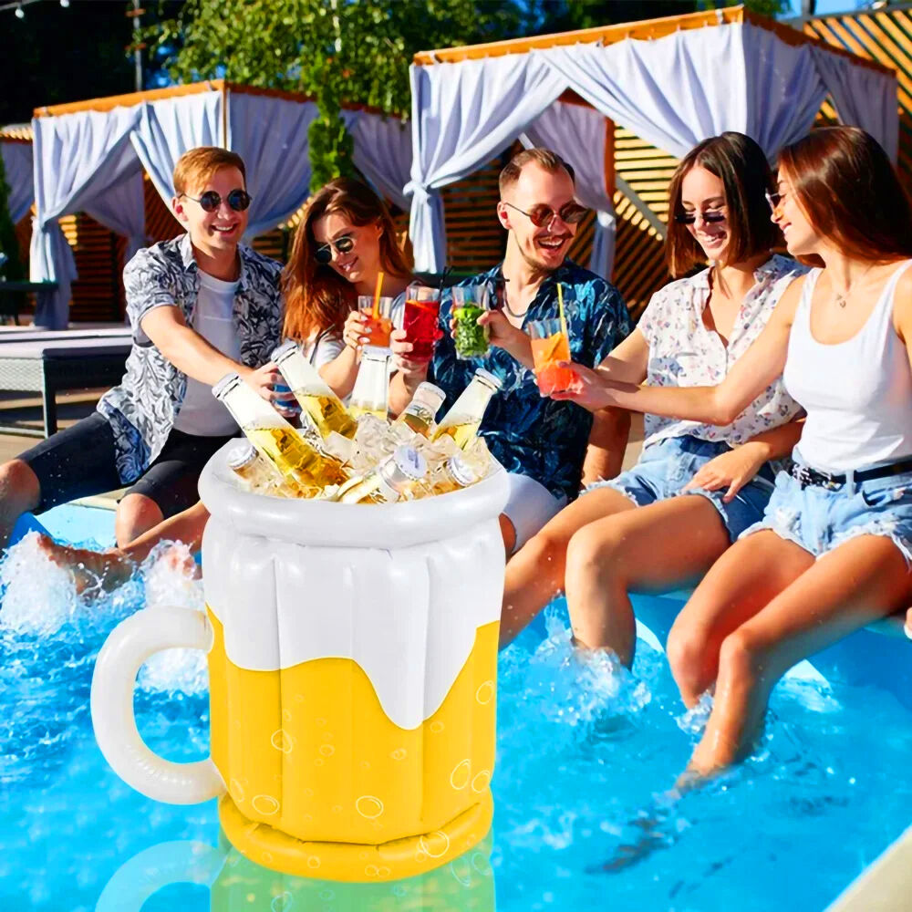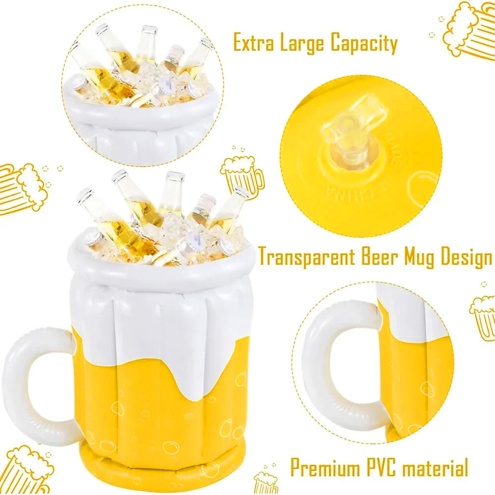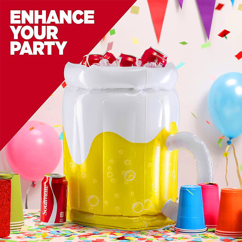 PVC Inflatable Beer Mug Ice Bucket Can Inflate quickly. Shaped and filled with ice cubes, the aerated beer cooler keeps party guests' beers and sodas cool for up to 20 beers on ice.