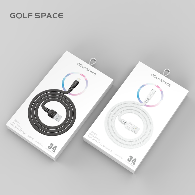 1 Meter 3A Flat Micro USB Fast Charging Data Cable GOLF SPACE SL02 White
