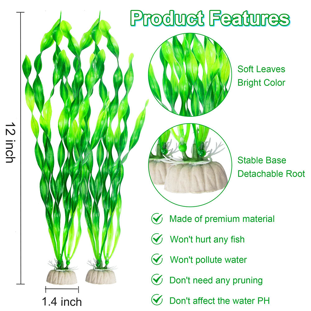 • Aquarium seaweed plastic plant, made of Eco-free non-toxic material PVC , ceramic base, won't contaminate water, color won't fade, plants will swing with the water which looks real