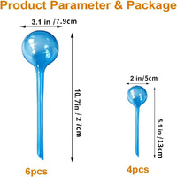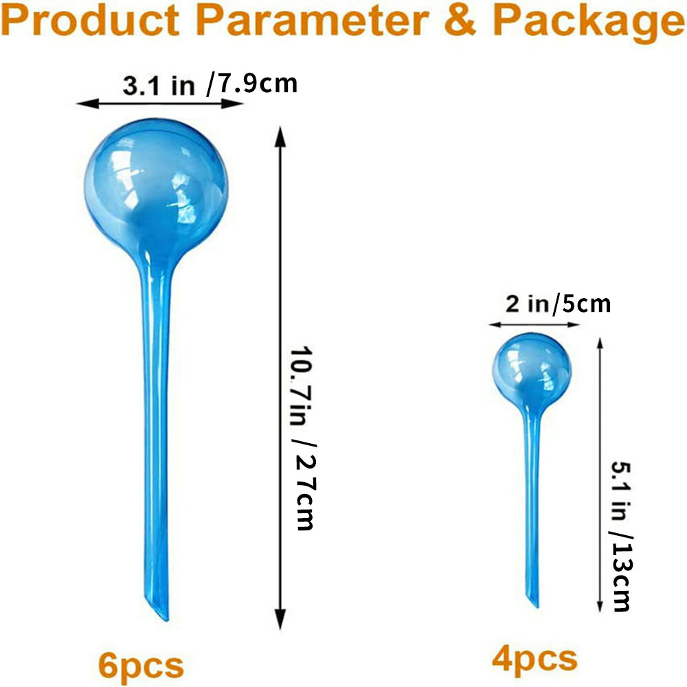 • Package:Package includes 10 plant watering globes,6L+4S,L:3.1x3.1x10.7inches/7.9x7.9x27cm.S:2x2x5.1 inches/5x5x13cm.You can use these watering globes with your family.