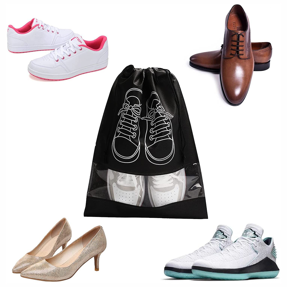10pcs Shoes Storage Bag Closet Organizer Non-Woven Travel Portable Bag-XL-Black