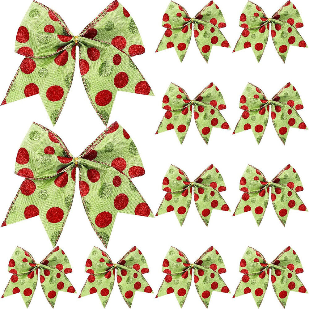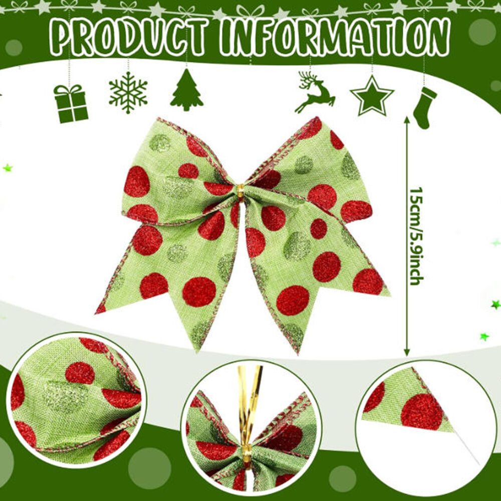 12 Pcs Christmas Bows Decor Christmas Wreaths Bows Xmas Tree Dot Ribbons-Green