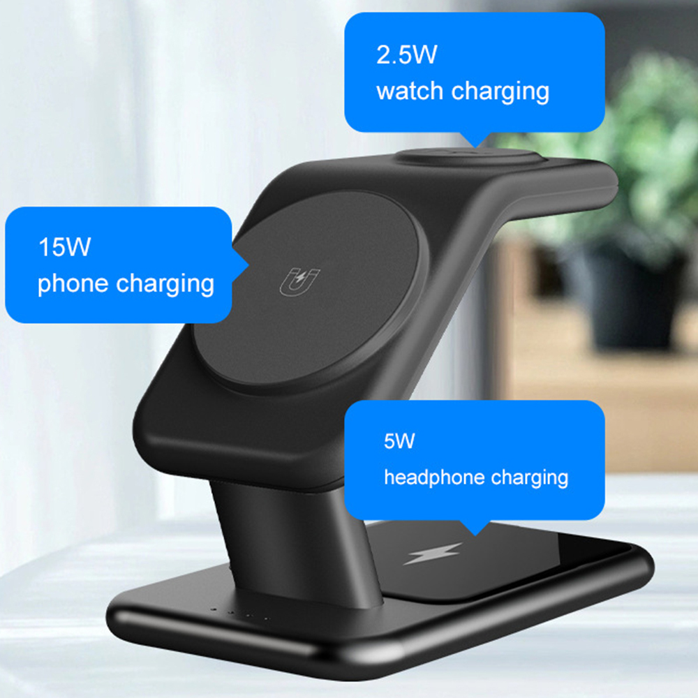 15W Multifunctional Magnetic Desktop 3 In 1 Wireless Charger Suitable For iPhone-Black