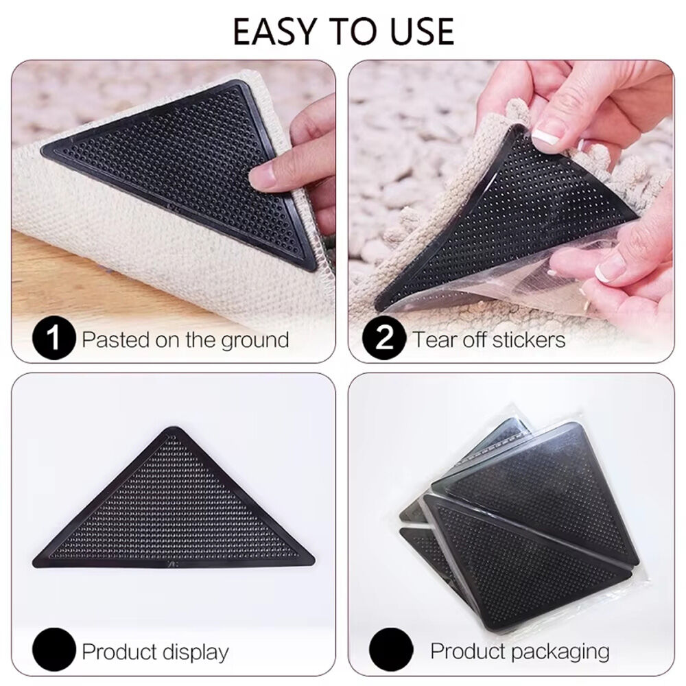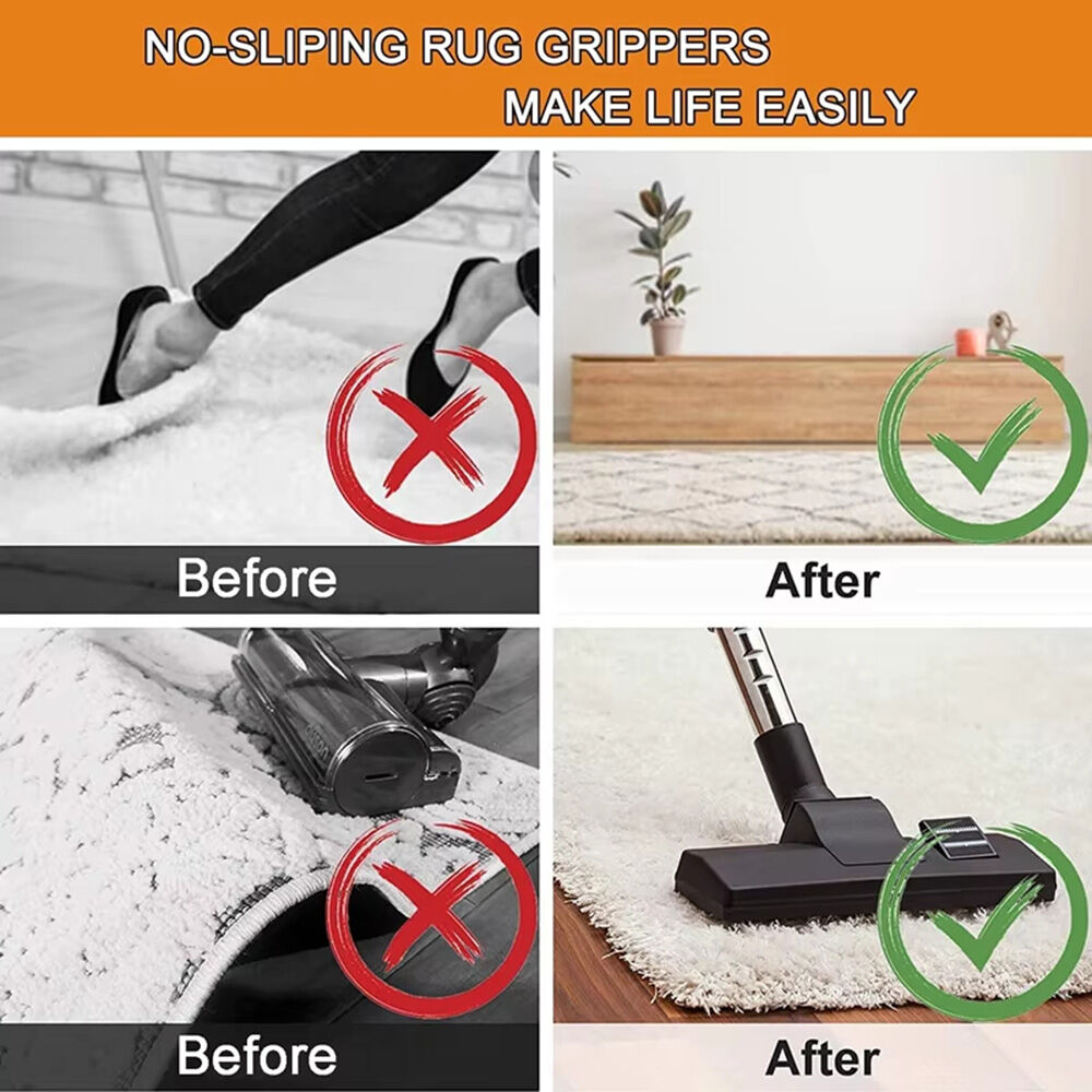 • Double sided adhesive rug grippers,peel off the rug grippers protective stickers to reveal the adhesive side and place them around the edges of your carpet. Lay your carpet flat against your floor and enjoy additional comfort and a firm hold. You can add more pads depending on the size of your rug.