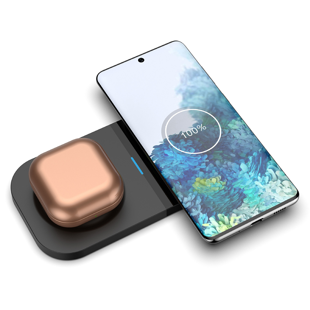 2 in 1 Wireless Charger dock looks compact and elegant, can charge 2 devices at the same time, which is convenient for your life.