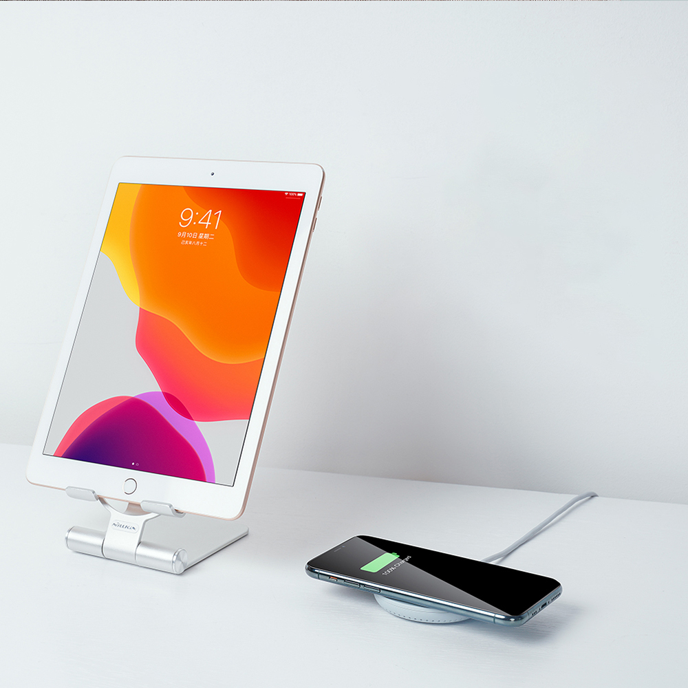 2 in 1 aluminum alloy Mini 15W Fast Wireless Charger Stand-Silver