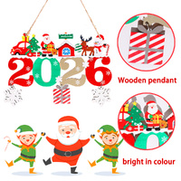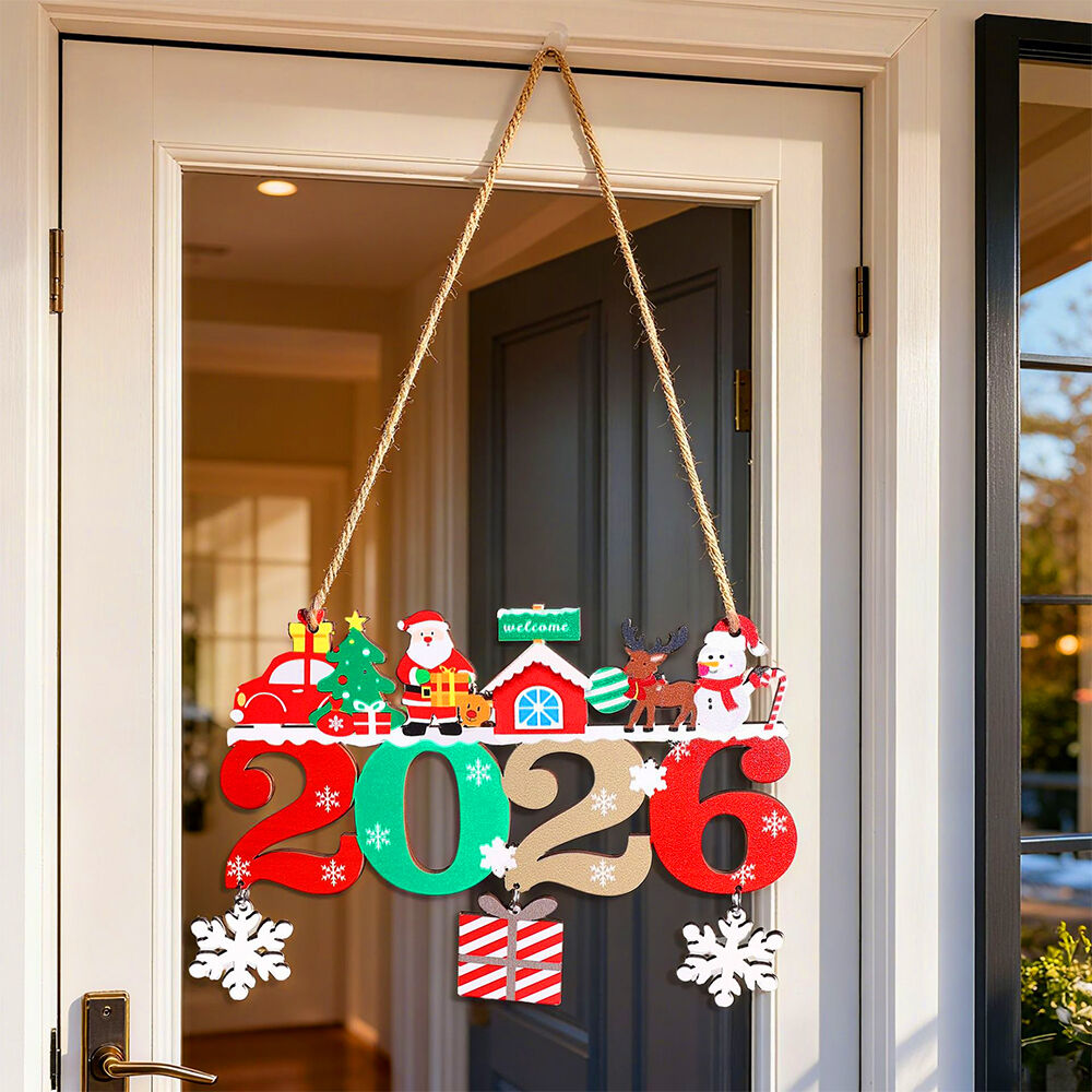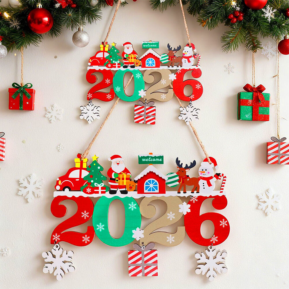 2 Pack 2026 Christmas Wooden Pendant Decor Doorplate Xmas Hanging Ornament