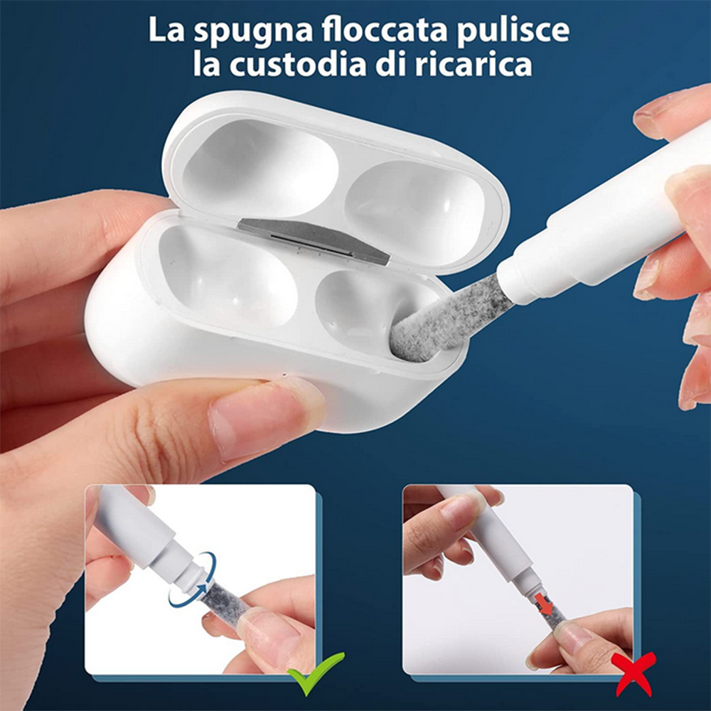 • Flocking Sponge: Delicate and soft flocking sponge can clean the dust in the wireless charging case of the earphone