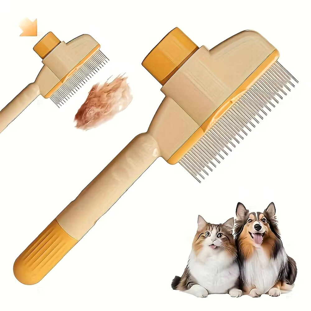 The mental pins on the cat brush with release buttonas a cat deshedding brush, it's perfect for shedding and massaging your pets without scratching your pet's skin, even the sensitive skin.