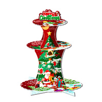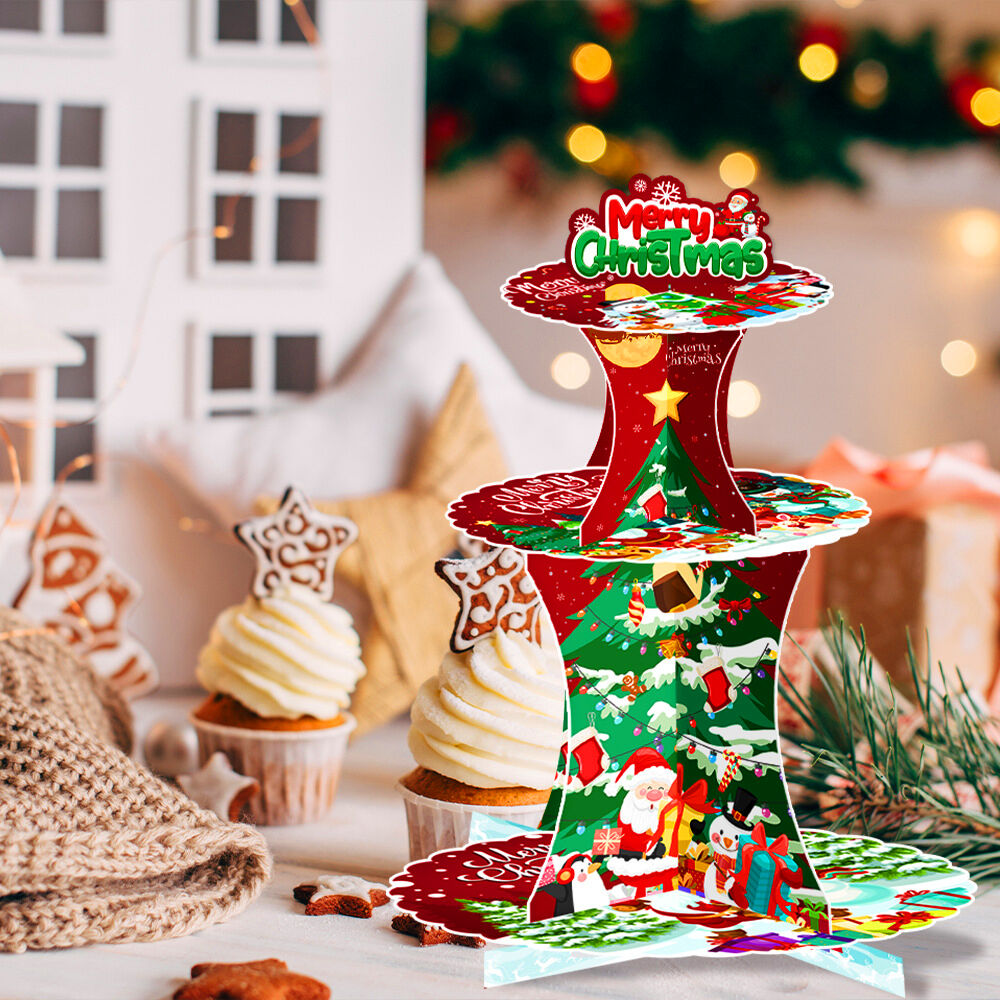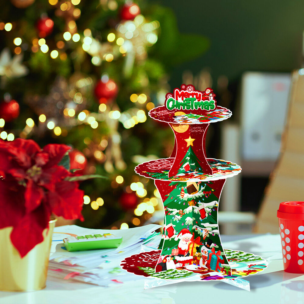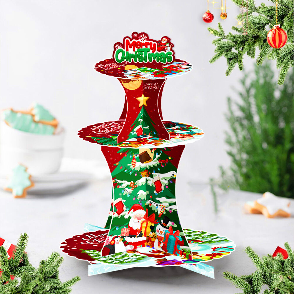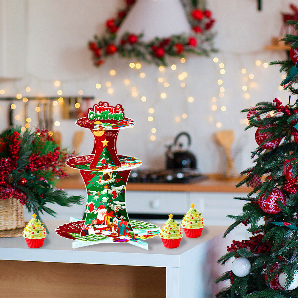 2 Pack Christmas Cupcake Stand 3 Tier Cardboard Cup Cake Stand Xmas Treat Stand
