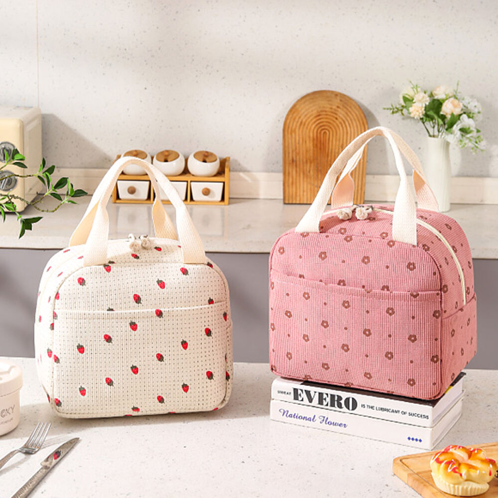 2 Pack Corduroy Lunch Bags Thermal Insulation Lunch Box Storage Bags Picnic Tote