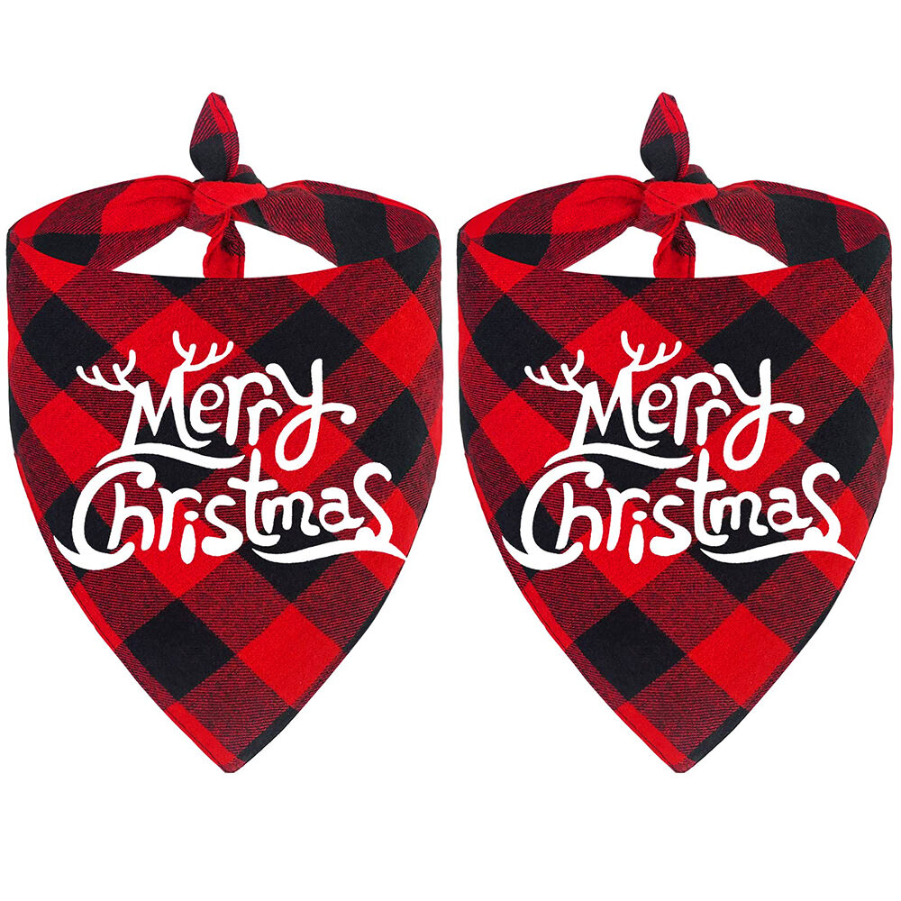 2 Pack Dog Bandana Christmas Classic Plaid Pet Scarf Triangle Bibs Kerchief