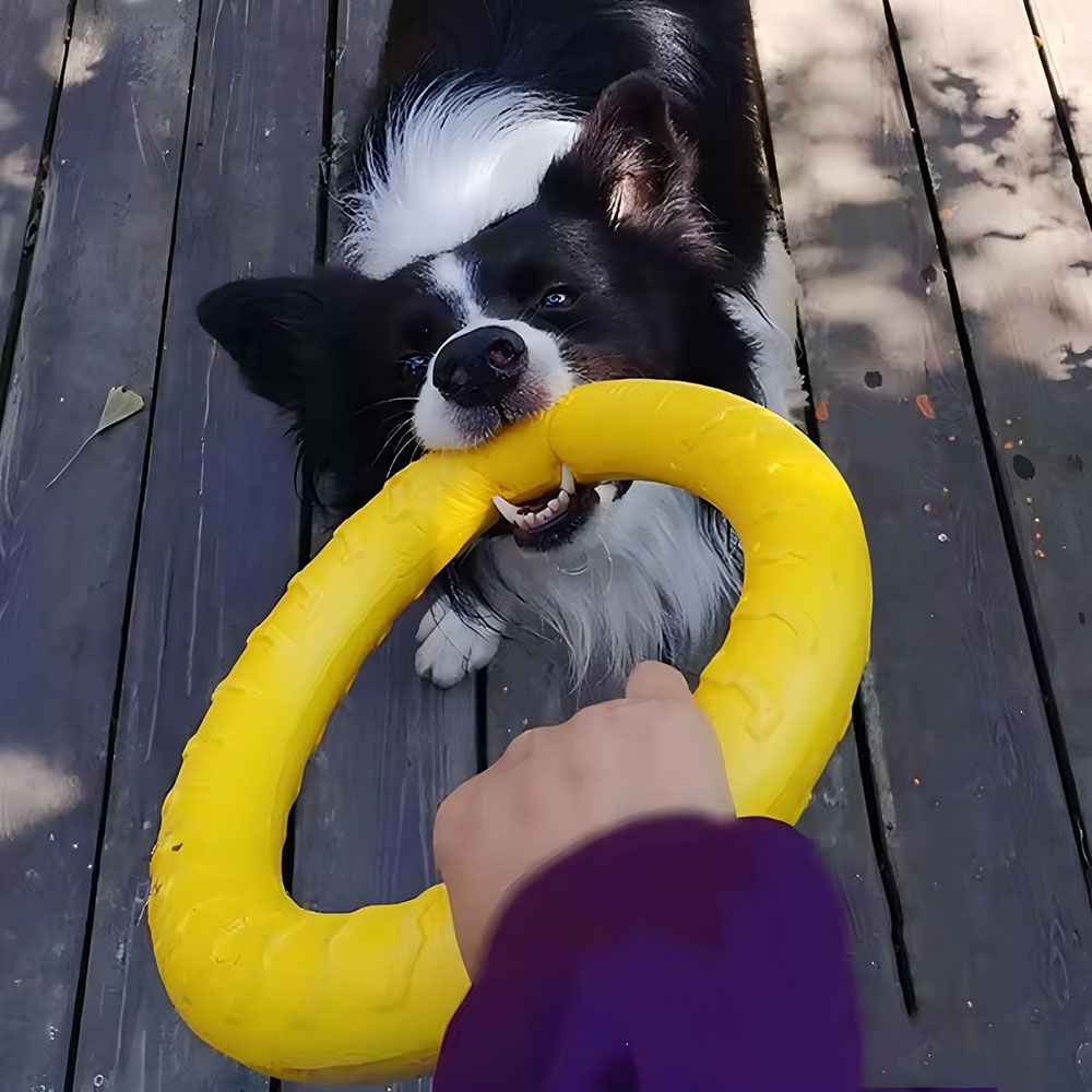 • The dog ring chew toy can be hung on the dog’s neck for outdoor interaction with the dog, such as throwing, tug of war, etc. Can reduce the dog's anxiety and thus reduce the dog's destructive behavior.