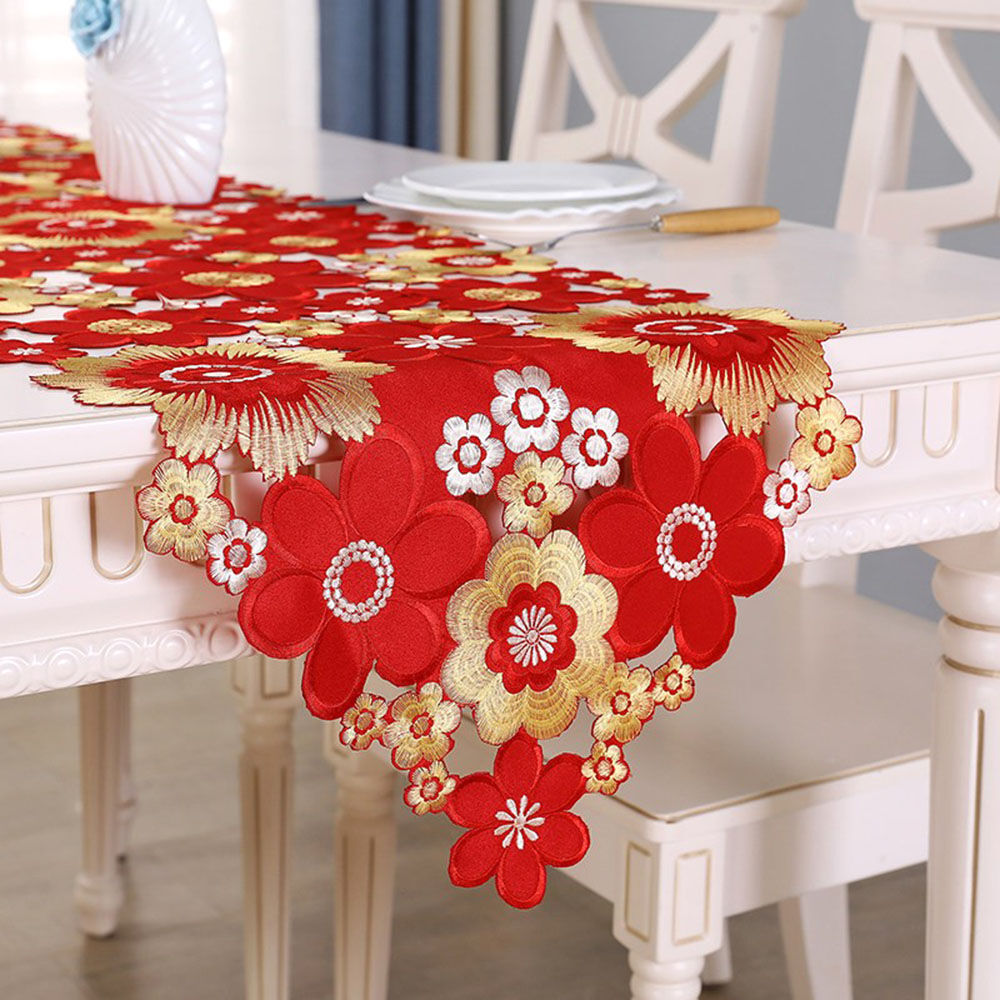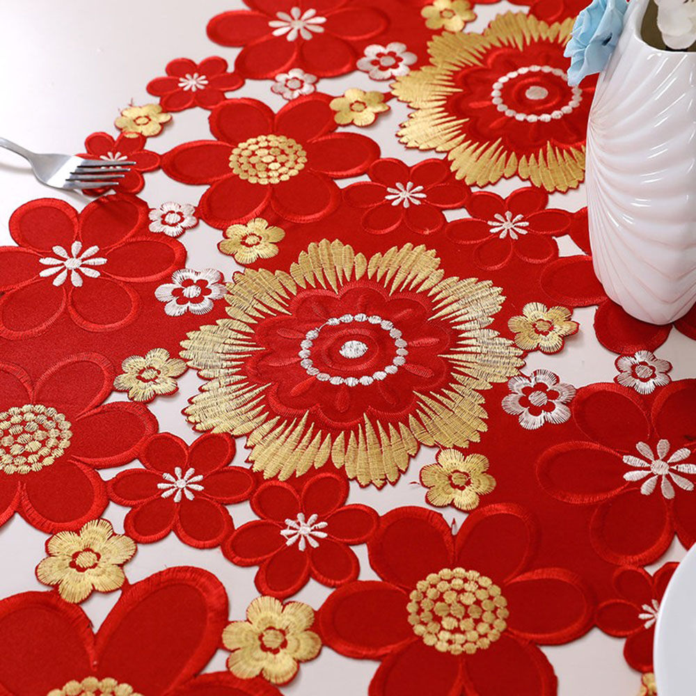 • Easy-Care Polyester Material: Embroidery table runner fabric is made of easy-care polyester which is machine washable, no smell, no-shrink, no color ran, can be reused.