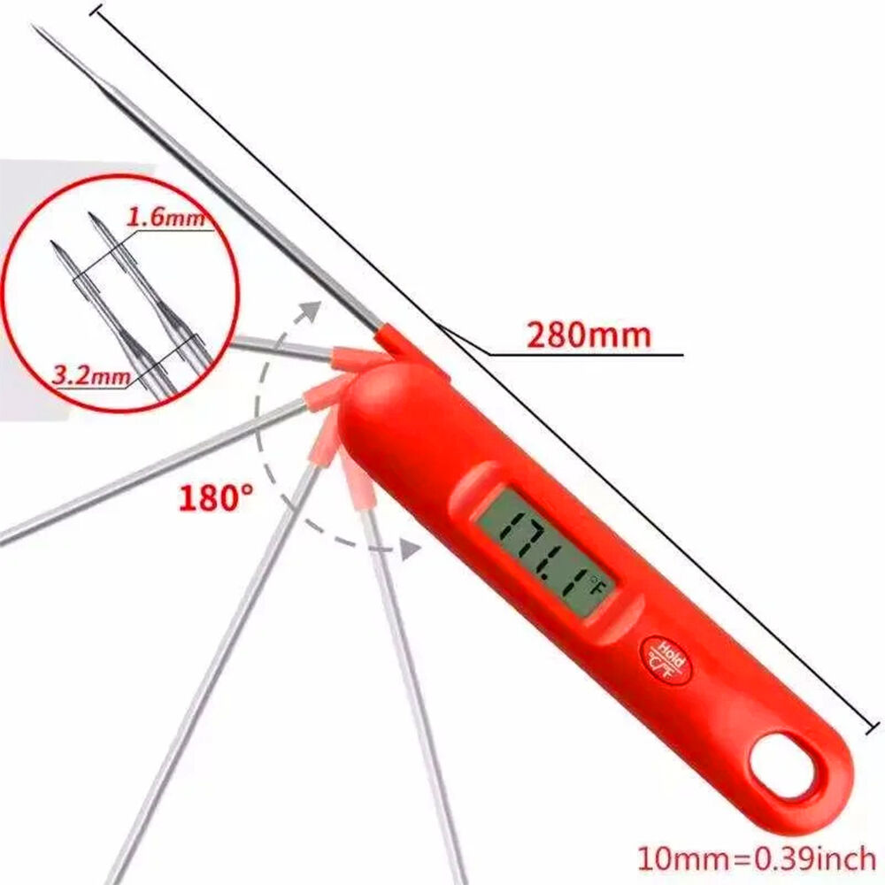 • Accurate and fast:The kitchen digital meat thermometer only takes 3s-4s to complete a temperature measurement. In a wide range of - -50 to 300¡æ, achieving accurate to +/-0.8 degrees. There is no need to wait for the temperature of the hot oven or grill to stabilize. Whether it is fried steak, grill, pork, lamb, turkey, fried fish, potatoes or outdoor barbecue, this meat thermometer can provide you with an accurate temperature reference
