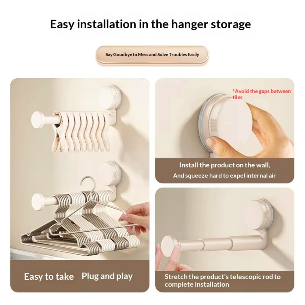 2 Pack Hanger Organizer Stacker Suction Cup Self-Adhesive Extendable Clothes Hanger Storage Rack