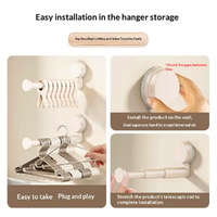 2 Pack Hanger Organizer Stacker Suction Cup Self-Adhesive Extendable Clothes Hanger Storage Rack-Beige