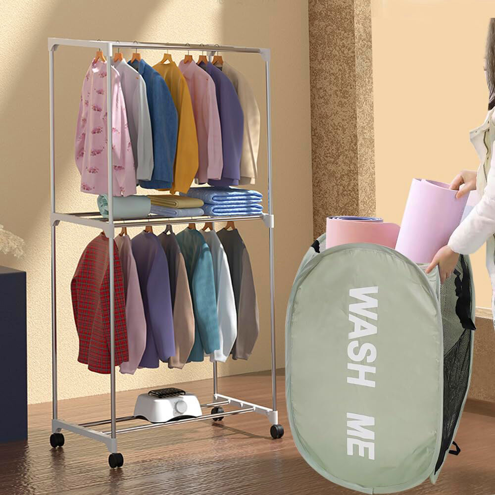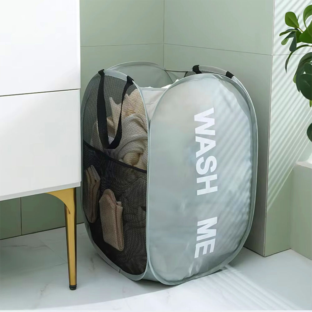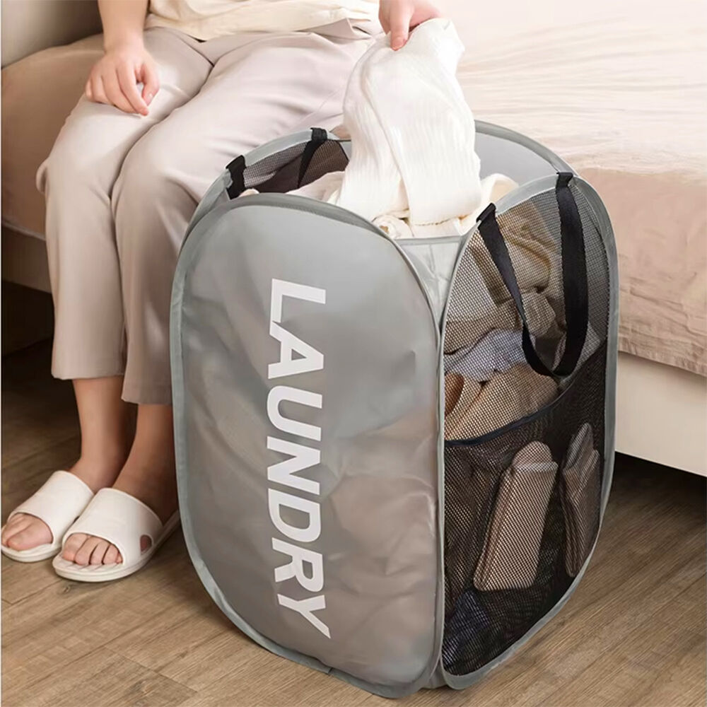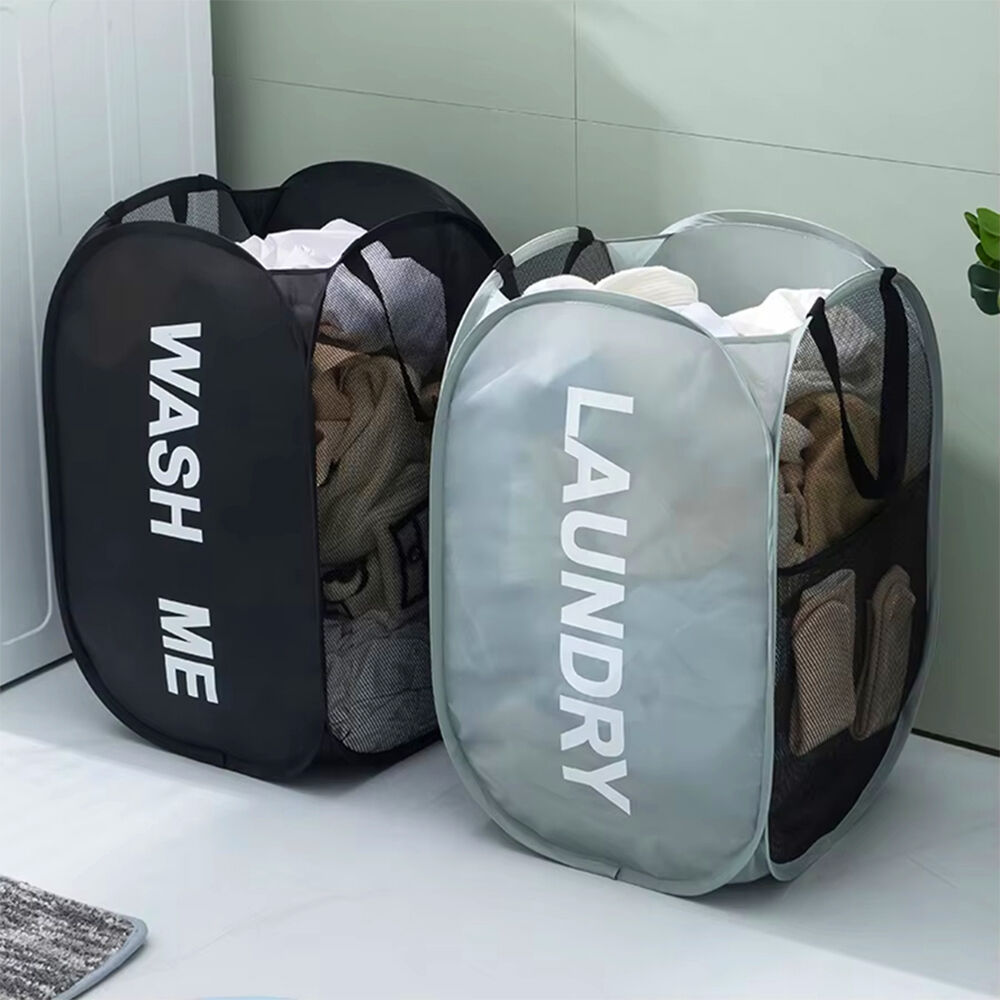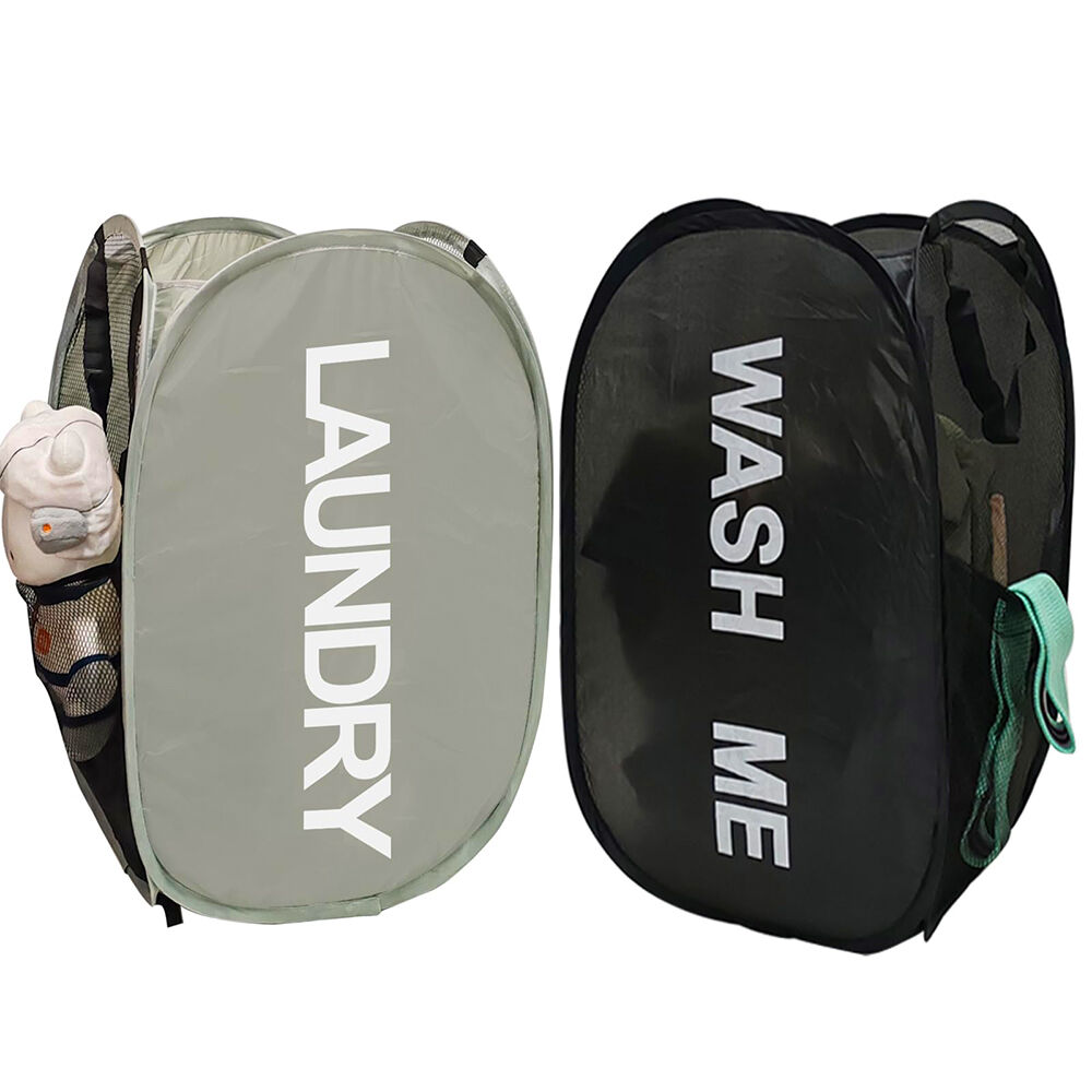 2 Pack Portable Mesh Pop Up Laundry Hamper Wide Opening Breathable Collapsible