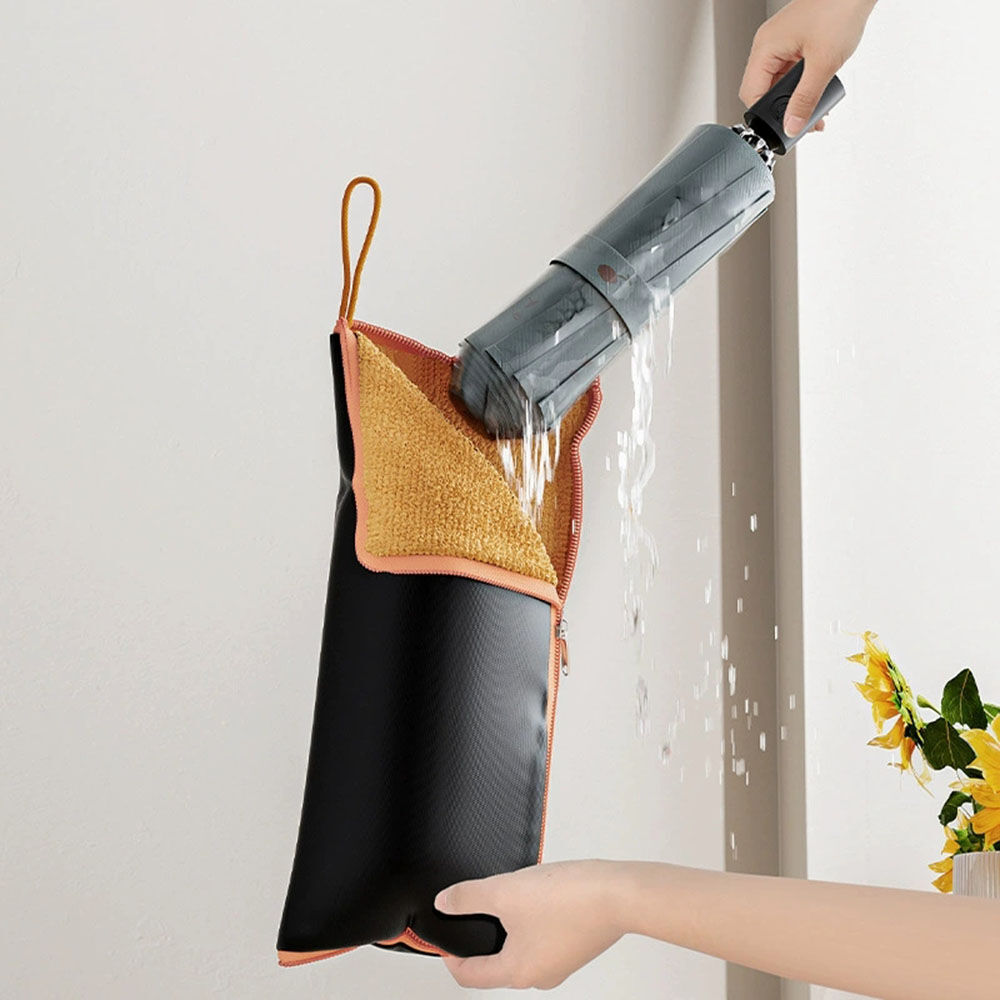 • Multi-Function: This umbrella bag can hold more than just umbrellas. It also cleans or wipes wet surfaces like cars or window, keeping them dry and shiny.