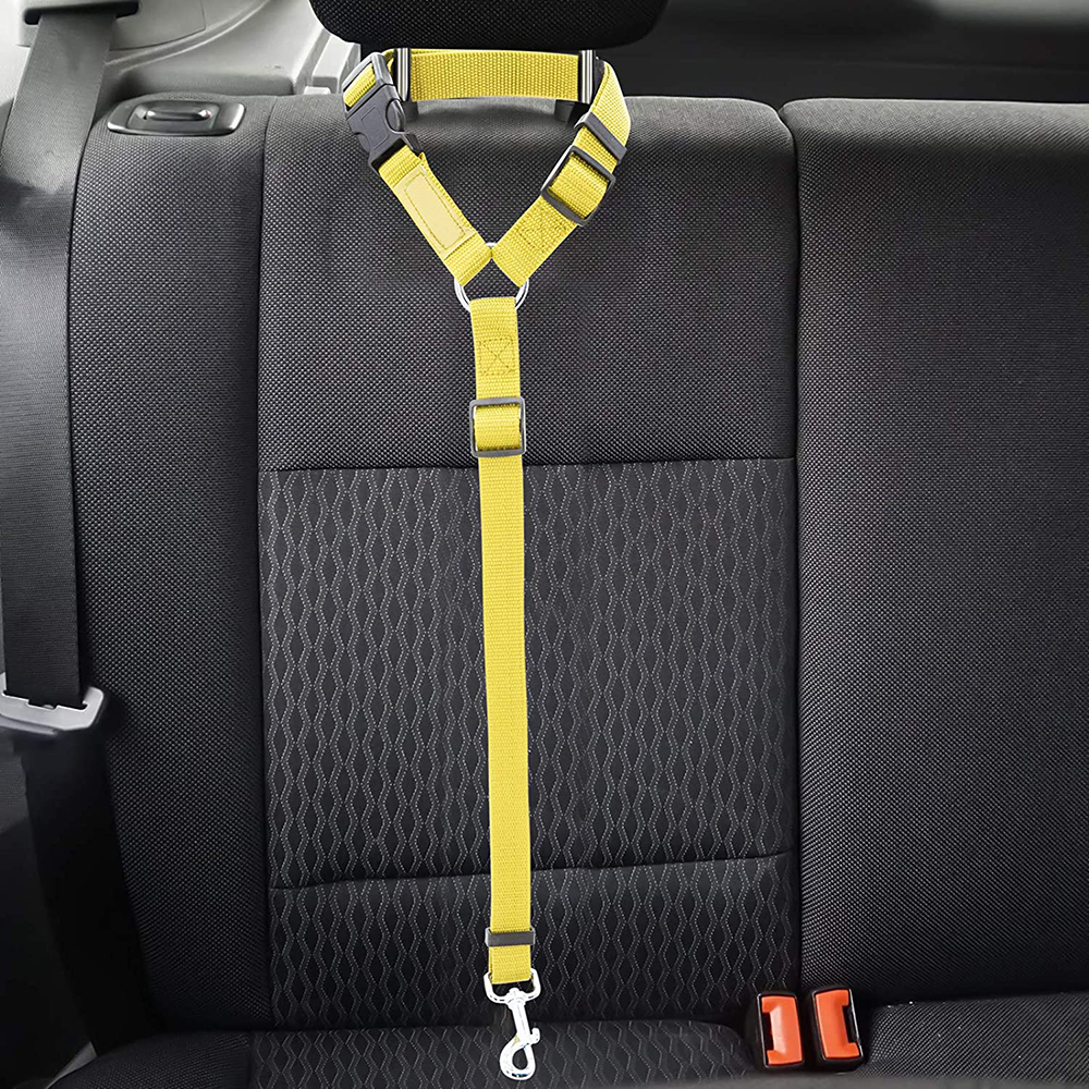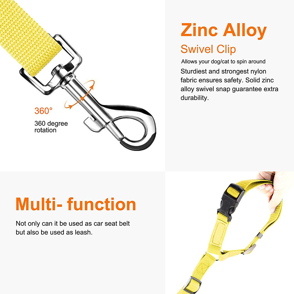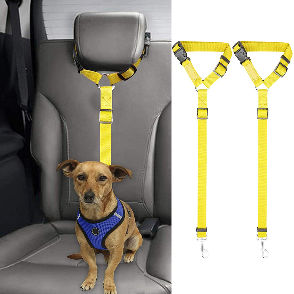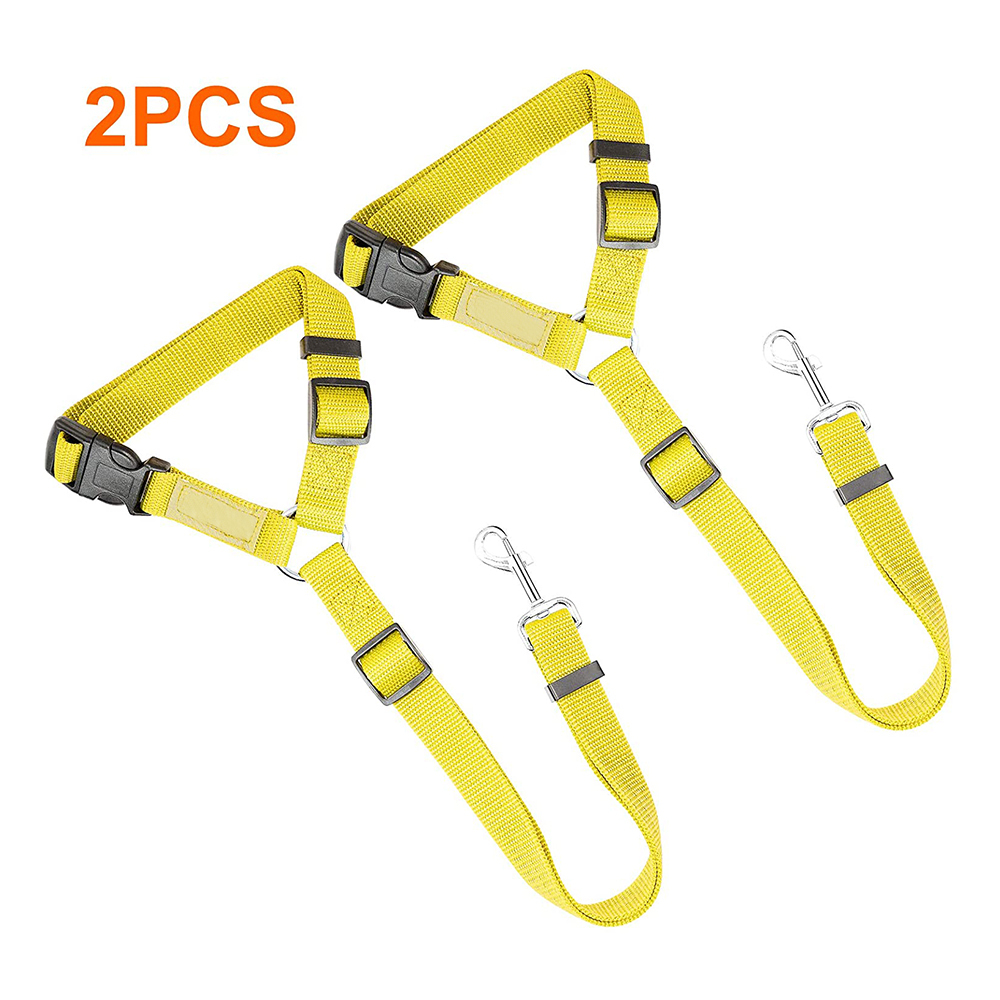 2 packs of pet dog and cat traction rope adjustable car pet seat belt-Yellow