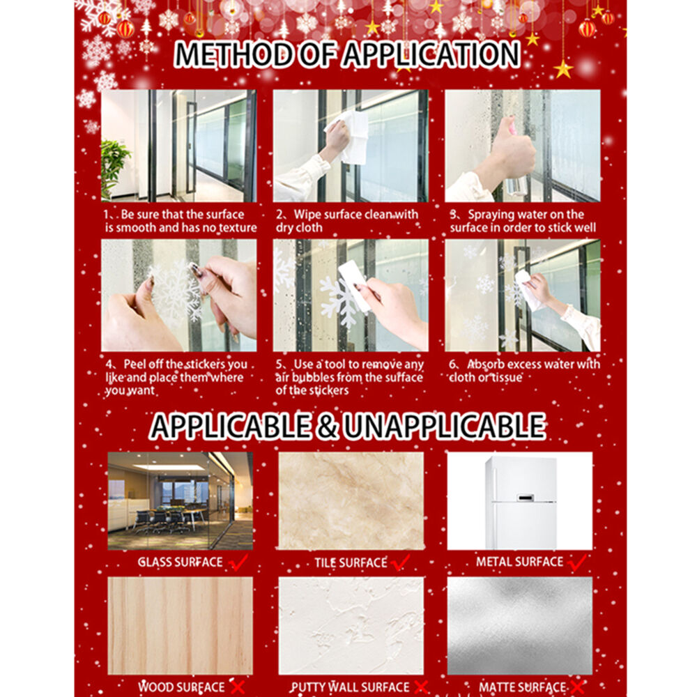 • Easy to Decorate: our Christmas theme window stickers are thin static clings which are made of PVC material. No need glue, spray a little water on the surface before stick it on window, then water will help stick better. Moreover, easy to removable clings without damage or residue. Durable and reusable.