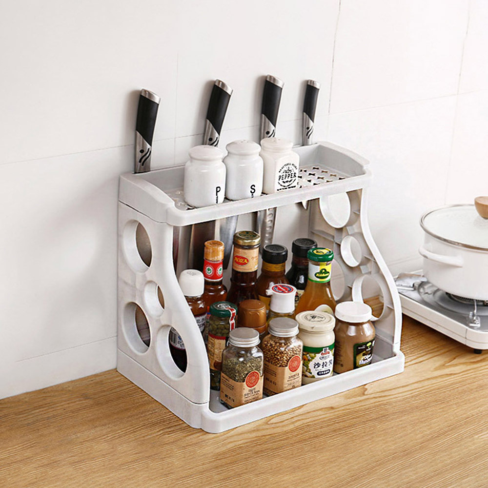 2 Tier Kitchen Storage Rack Spice Jars Bottle Stand Holder Kitchen Organizer