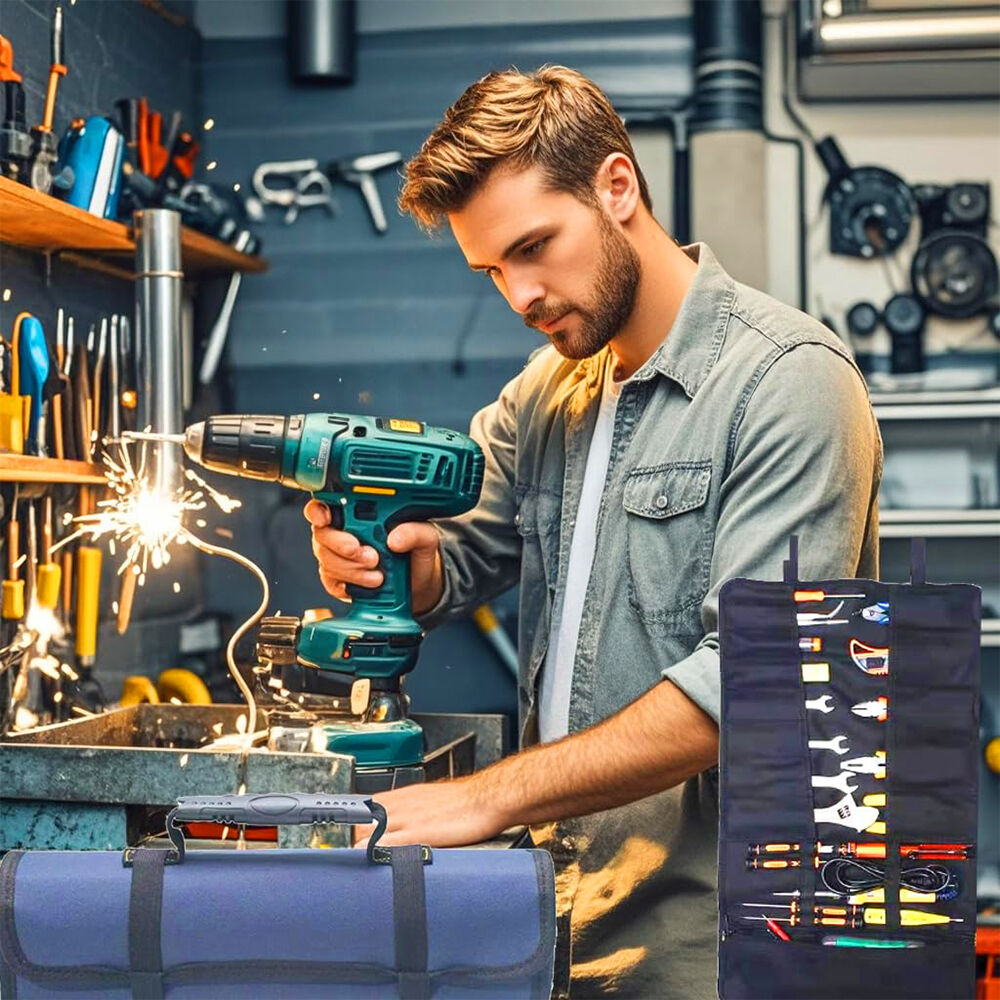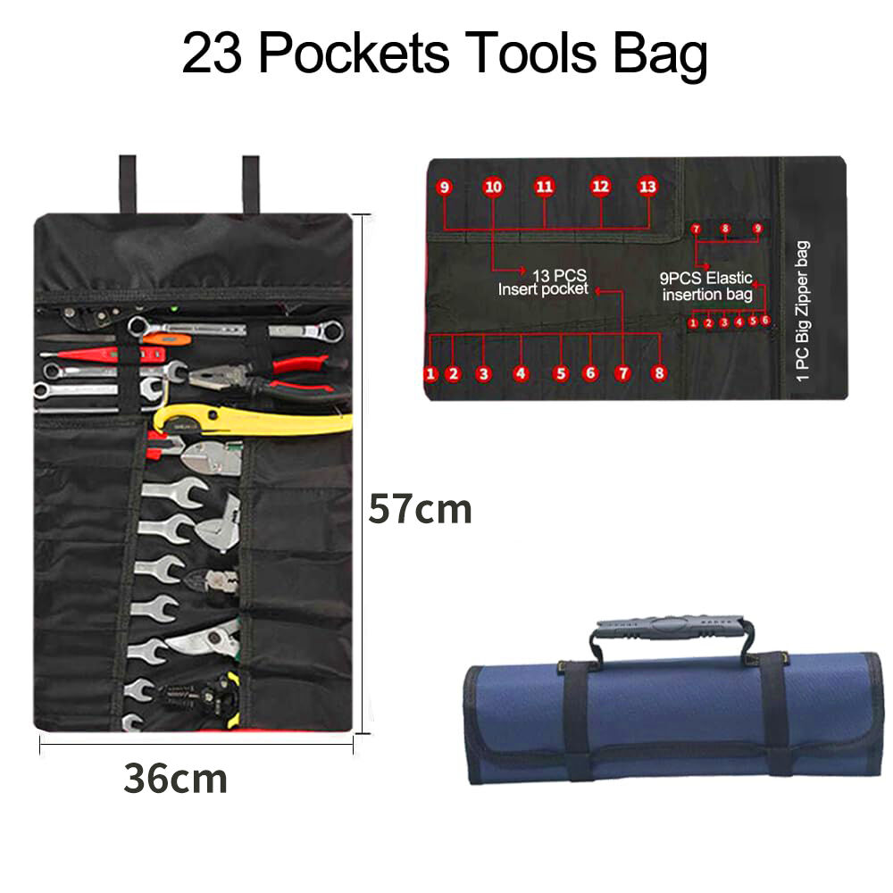 23 Pocket Tool Bag Roll Up Tool Organizer Portable Tool Storage With Zipper Pouch