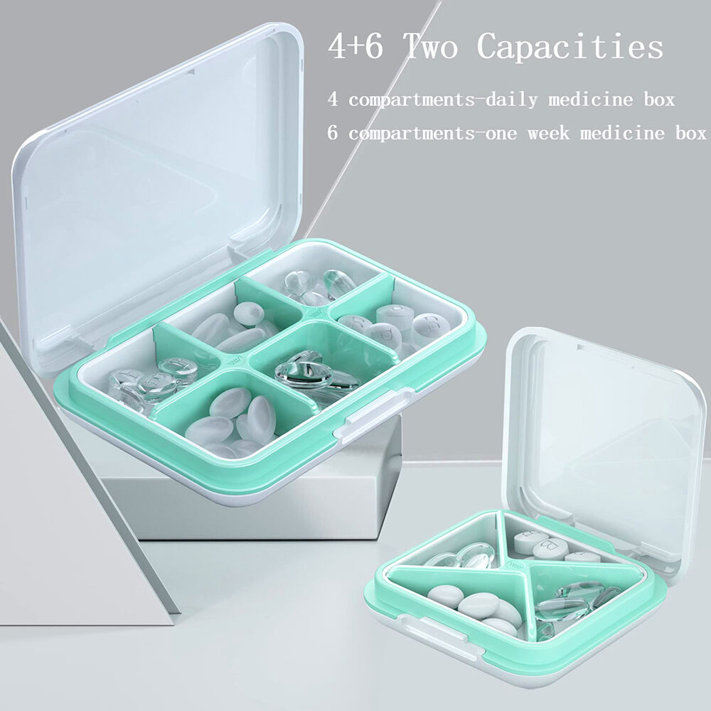 2Pack Travel Pill Organizer Waterproof Pill Box For Pocket 4+6 Compartments-White