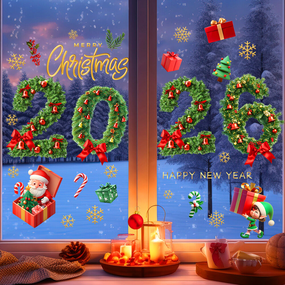 • Festive design: 2026 year Christmas window clings, featuring pine needle ,bell , snowman, and snowflake designs that enhance your holiday decor.