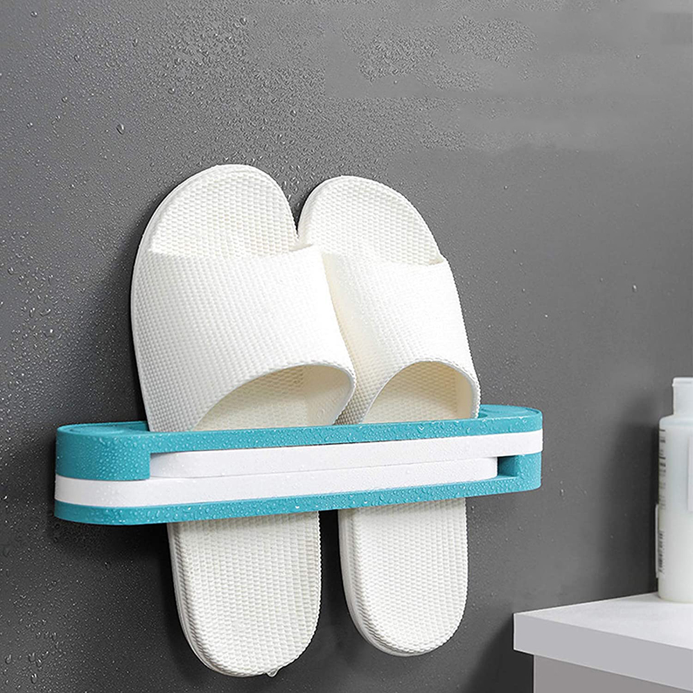 2pcs 3 in 1 Folding Wall Mounted Shoes Hanger Holder Shoe Organizer Rack-Blue
