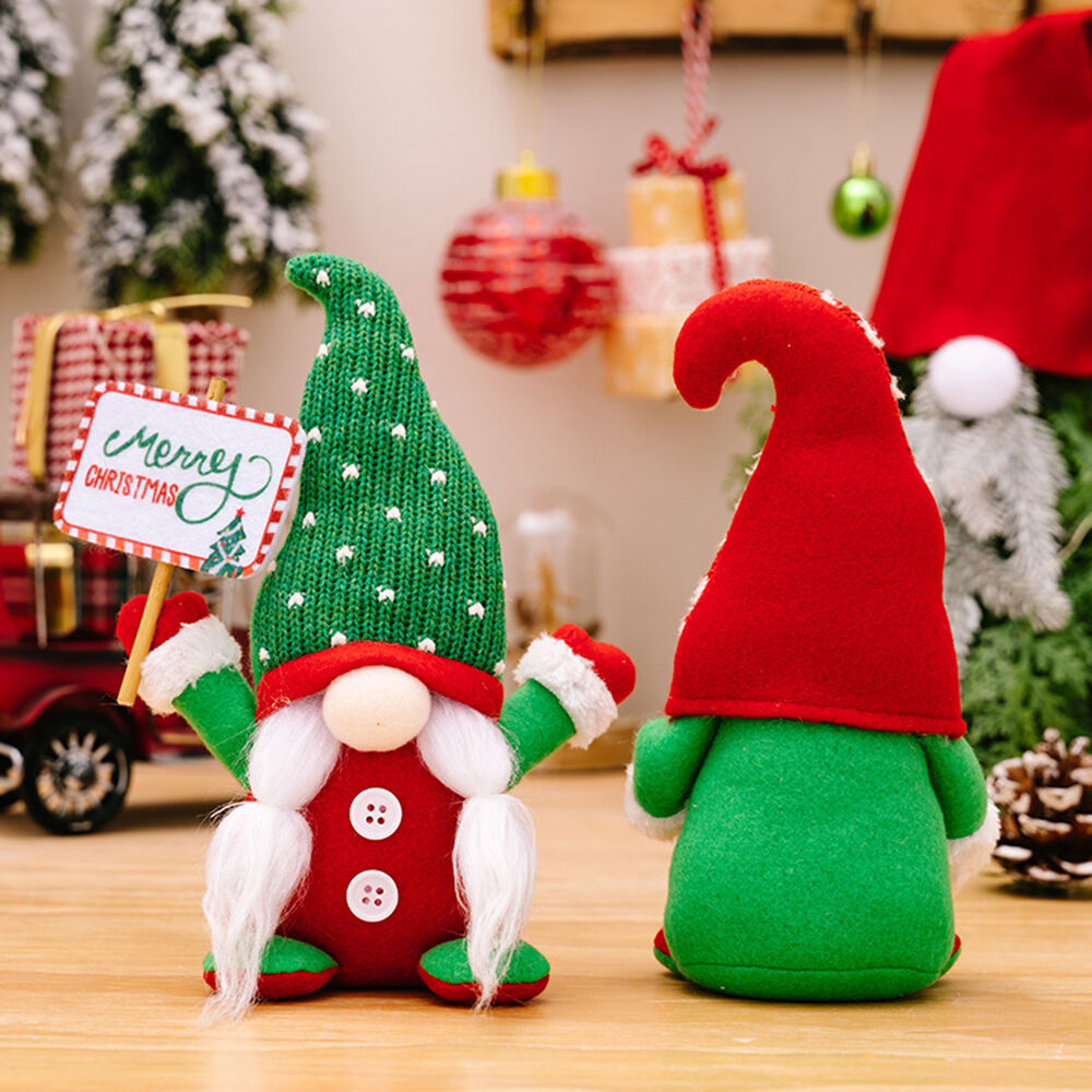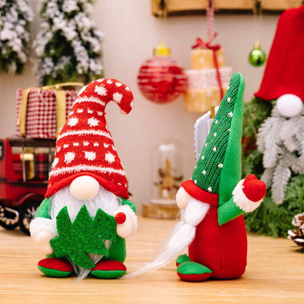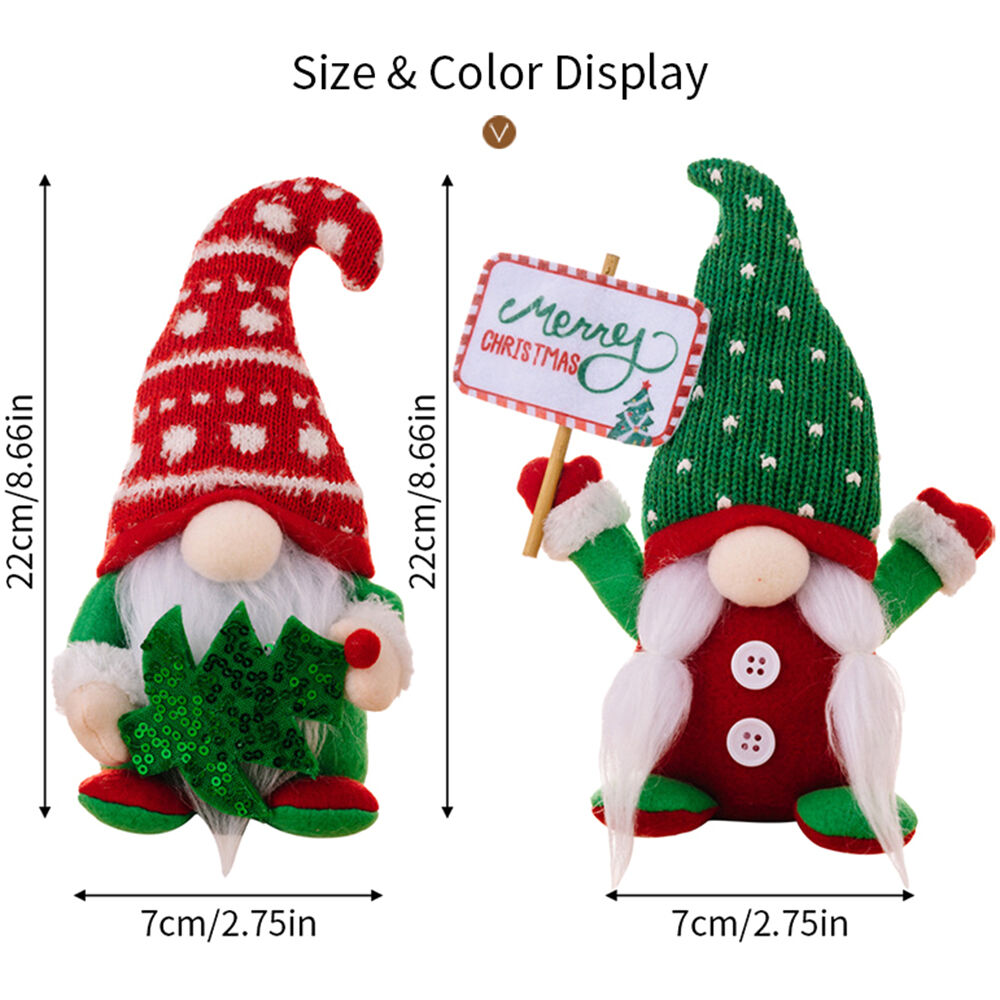 2Pcs Christmas Decorations Gnomes Doll Ornament Knitted Curved Hat Faceless Doll