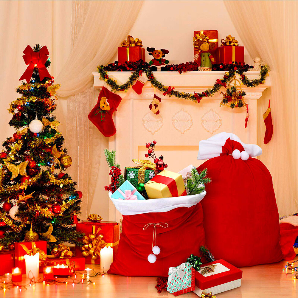 2pcs Christmas Velvet Santa Bags With Drawstring Large Xmas Bags Santa Gift Sack