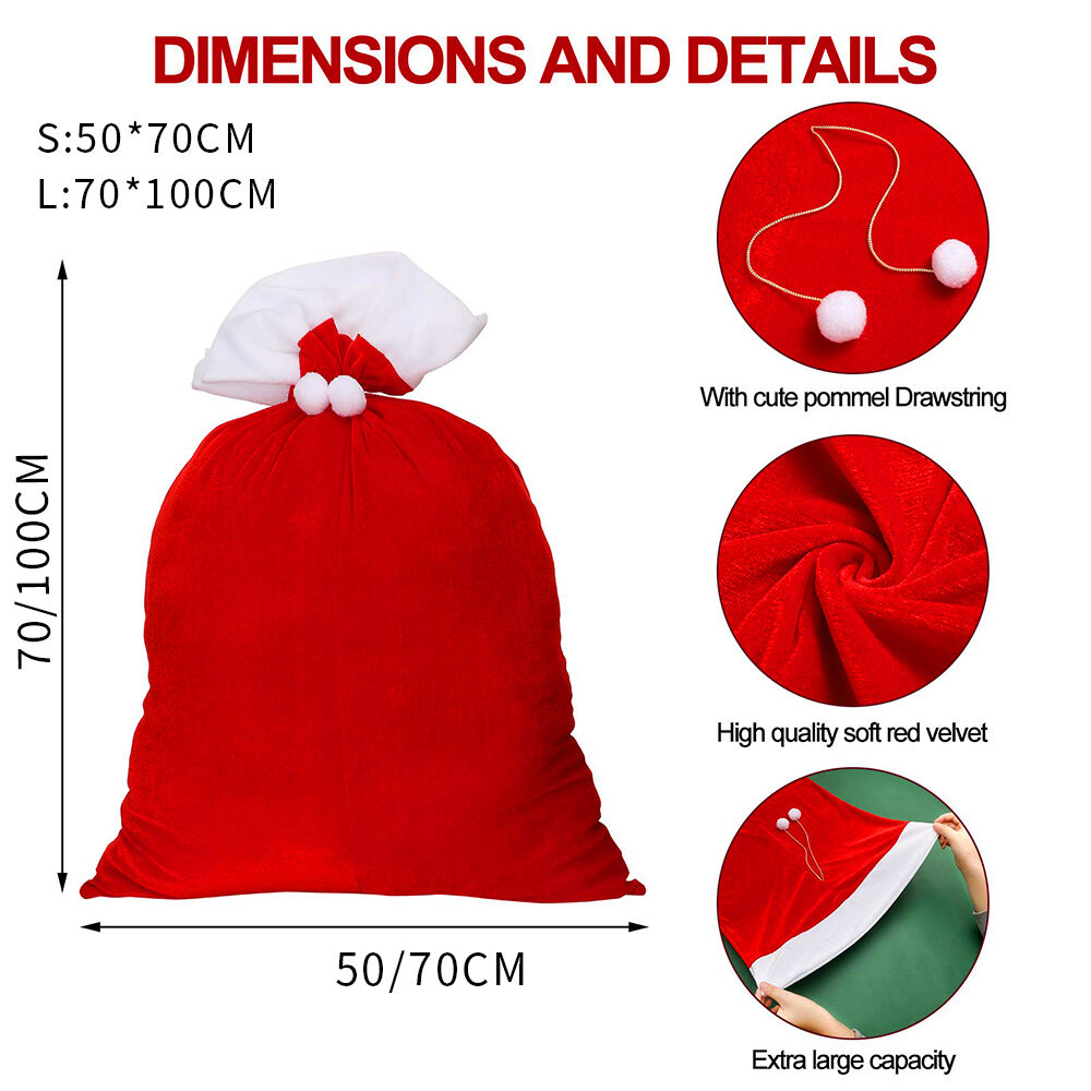 • Size Details: the Christmas sack is about 50/70cm wide and70/100cm high, enough capacity and large size can meet the needs of big gifts or toys for your beloved girls and boys