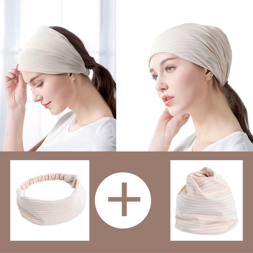 2Pcs Confinement Hat Scarf Bandana Headwear for Women Turbans for Ladies Headwrap