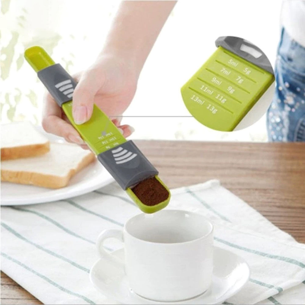 2Pcs Kitchen Adjustable Measuring Spoons with Scale Eight Stalls Measuring Spoon
