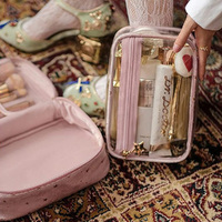 2Pcs Makeup Bag Zipper Pouch Travel Toiletry Bag Cosmetic Case Organizer-Pink