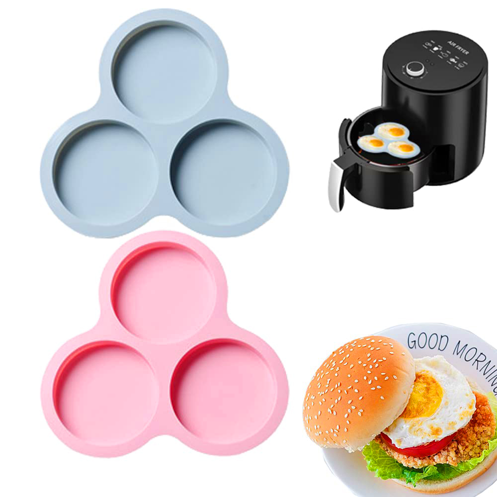 Silicone 3 cavity egg pan can place bread, ham, eggs, vegetables and more, can be used in microwave oven, air fryer baking, daily home baking, grilling or placing food.