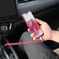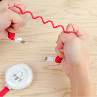 3 in 1 USB telescopic spring data cable can store charging cable-Red