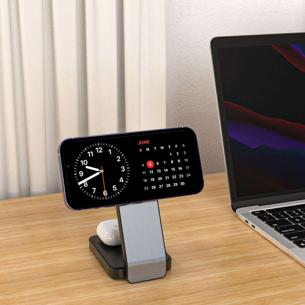 - The special feature of mag-safe docking station with foldable design, which takes up very little space and can be put into your pocket more easily. The portable travel wireless charger for multiple devices suitable for office, library, home, travel and other occasions.