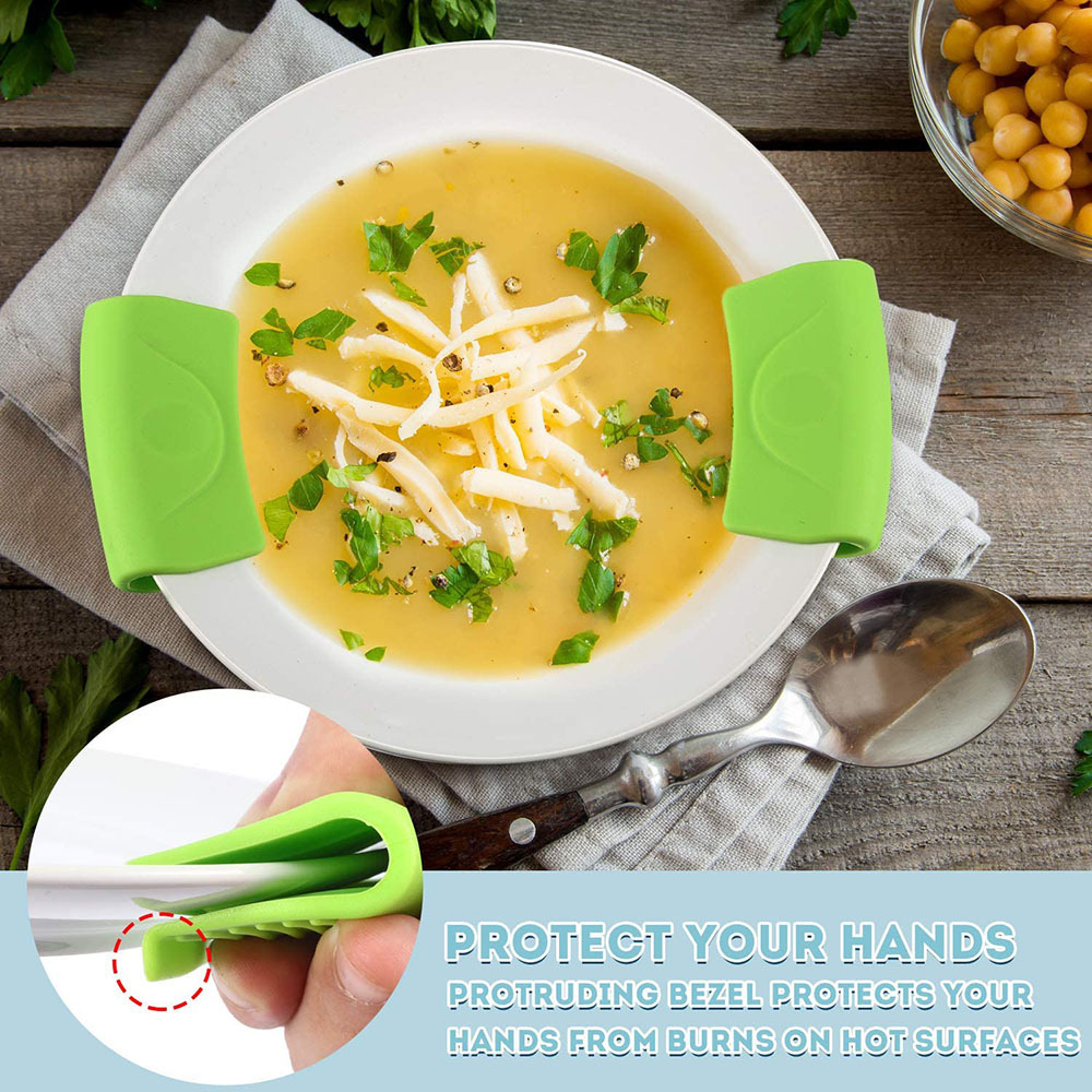 Silicone hot handle bracket can block the heat on the handle and enhance the grip, providing you with more protection and preventing the hot plate from falling and causing injury to people