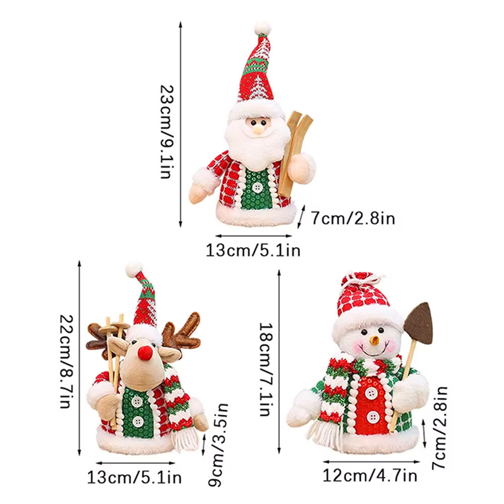 3 Pcs Christmas Santa Claus Snowman Elk Plush Doll Christmas Ornament
