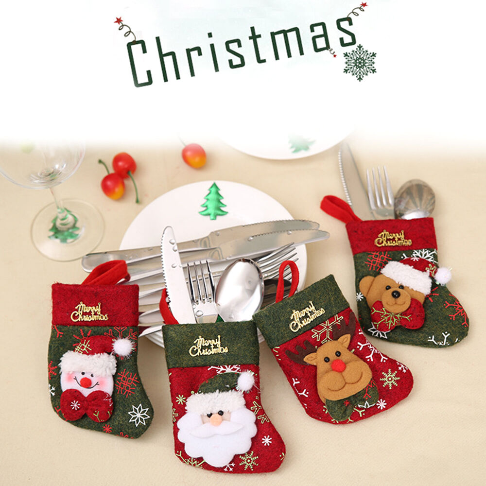 8Pcs Christmas Socks Knife And Fork Set Storage Cutlery Package Party Xmas Decor