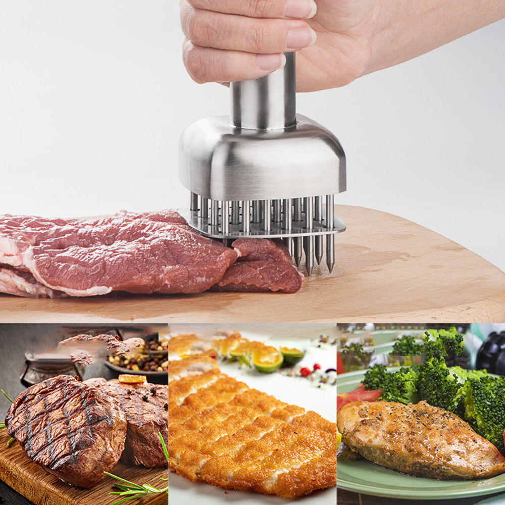 • Multi-Functional Meat Tenderizer Tool: This 316 stainless steel meat tenderizer needle has 24 sturdy, sharp needles that easily tenderize meat and poultry before cooking or marinating, including steaks, beef, chicken, pork, and ground meats