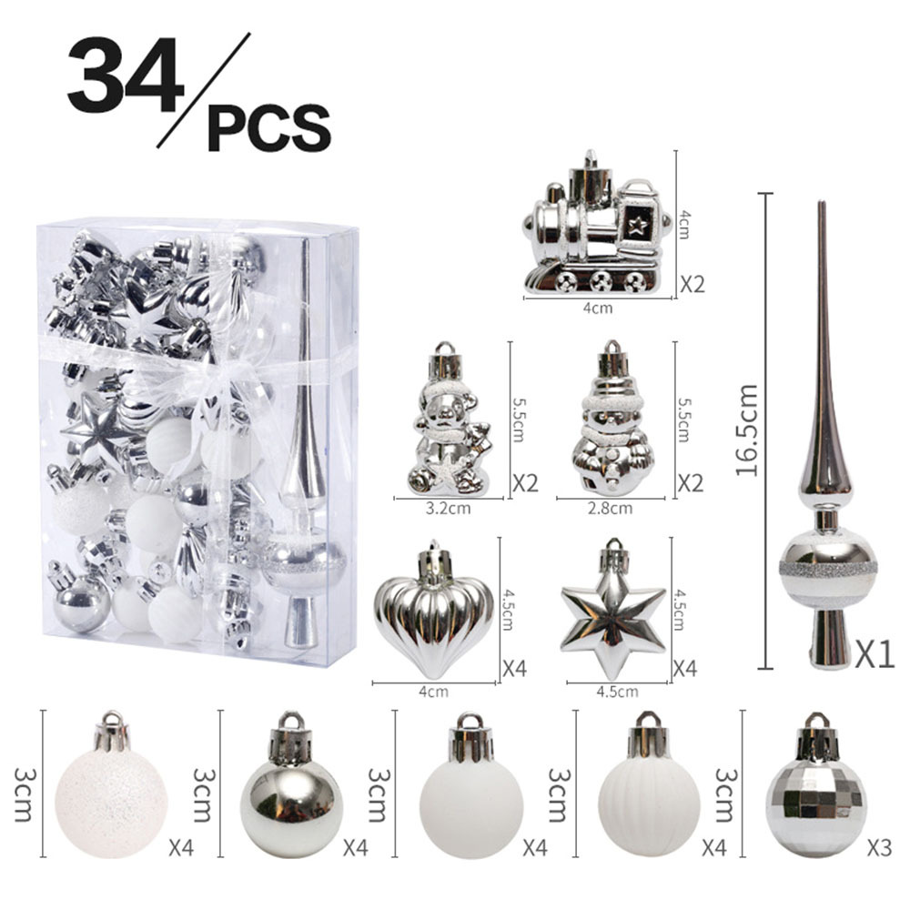 34Pcs Christmas Decorations Christmas Ball Set Gift Pack Christmas Tree Pendant-Silver