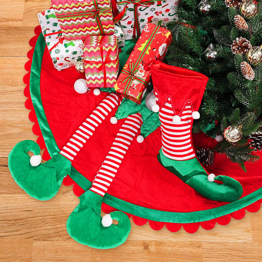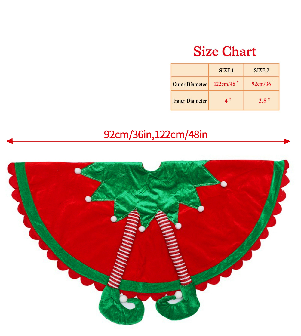 • Christmas Tree Skirt Size:Xmas tree skirt outer diameter is 36/48 Inches Suitable for 6-8inches tall Christmas trees.Elf leg tree skirts will bring a warm strong holiday atmosphere to your family.
