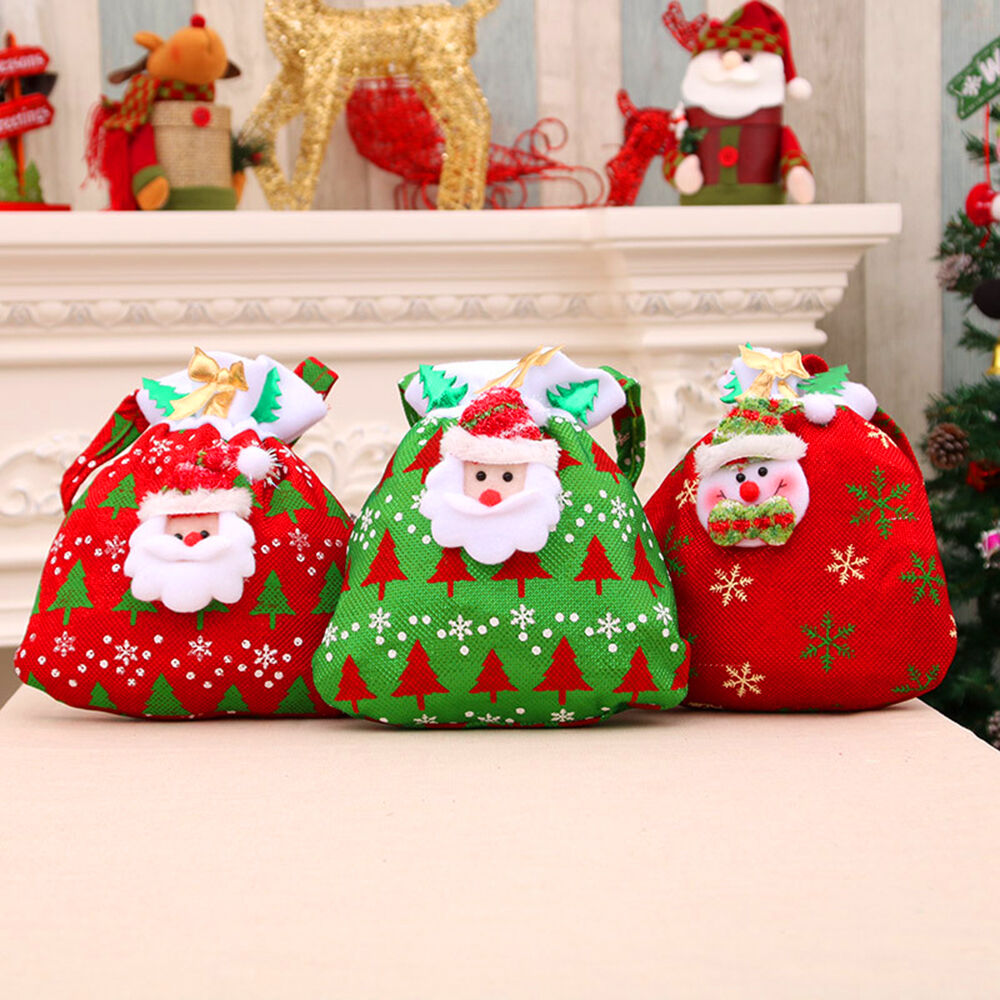3pack Christmas Gift Bags Santa Sack Drawstring Apple Bags Xmas Candy Gift Bag