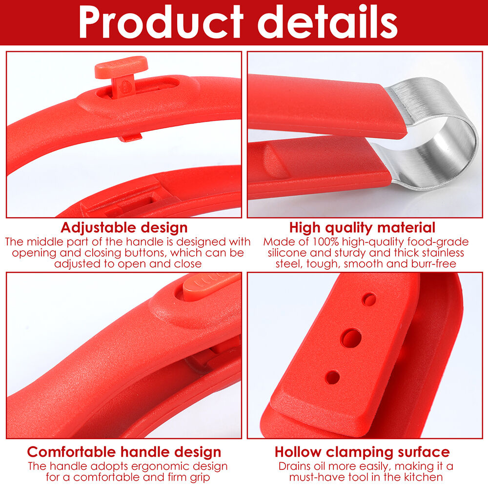 Made of high quality silicone and stainless steel, this BBQ spatula and clamp the designed with adjustable buttons for easy use and with hollow holes to quickly filter oil and water. The handle is non-slip and comfortable, heat-resistant and anti-scald.