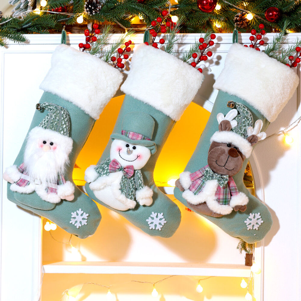 3Pcs Christmas Stockings Decorations Santa Claus Socks Christmas Tree Ornaments