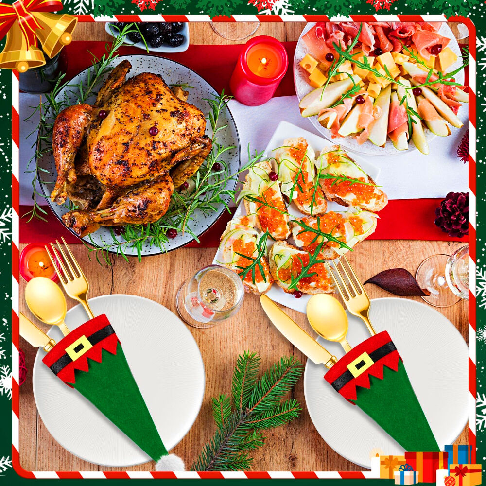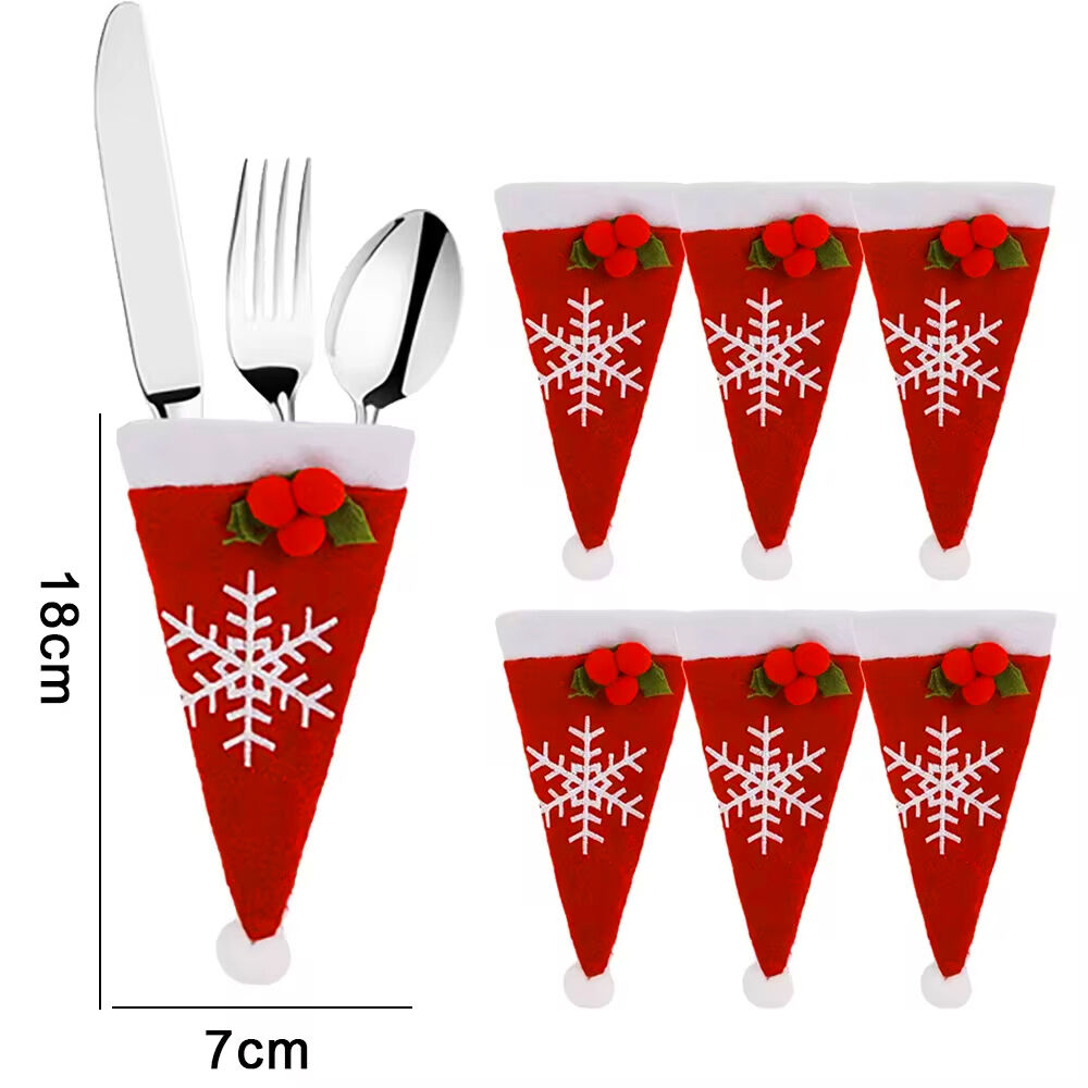• Christmastable decorations. Add a touch of holiday cheer to your dining table with adorable Christmas santa hats silverware holders. Perfect for Christmas table decorations and centerpieces.