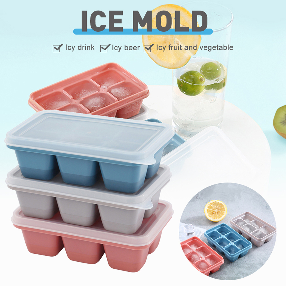 3pcs DIY square ice cube mold with lid for household use 6 soft bottom ice tray